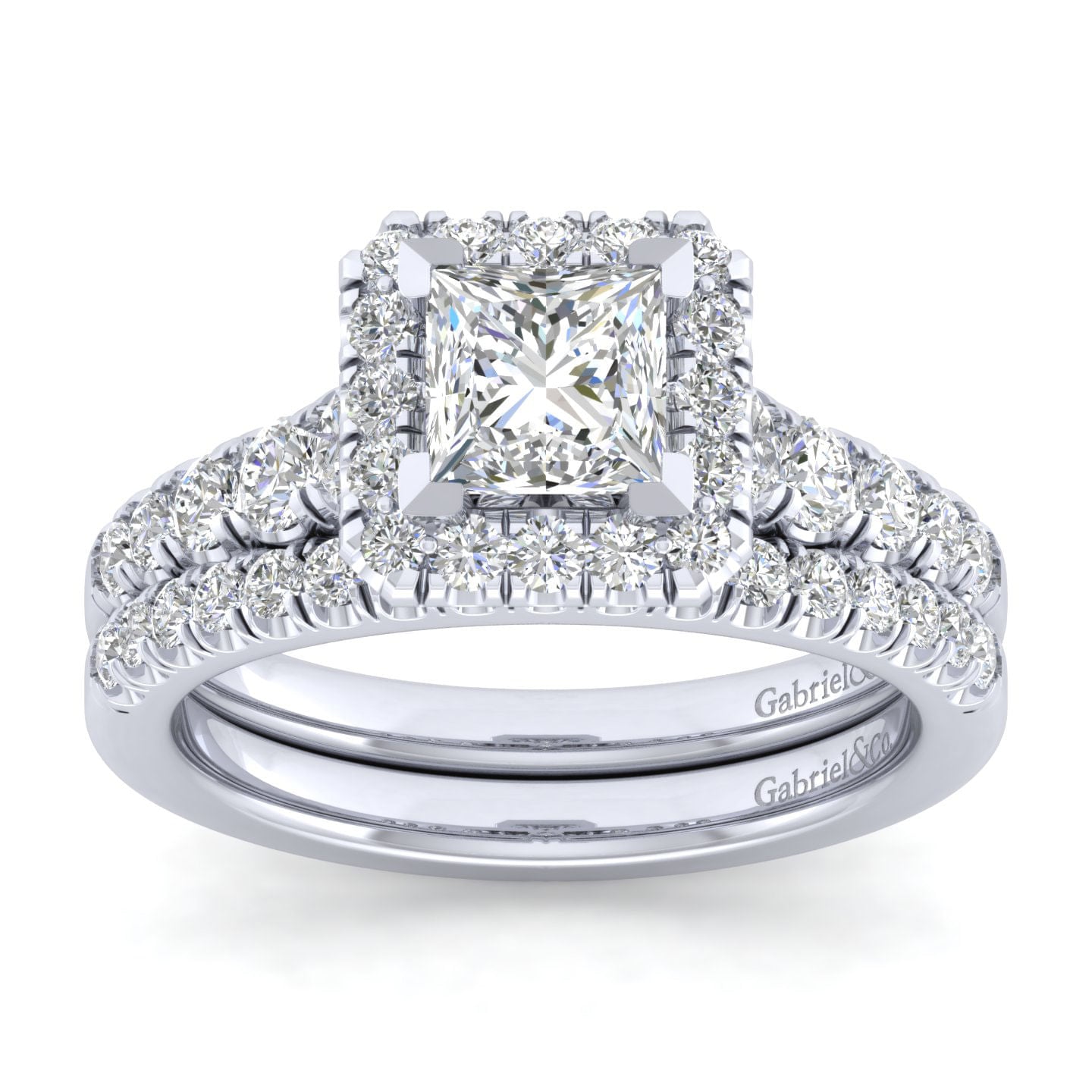 14K White Gold Princess Halo Diamond Engagement Ring