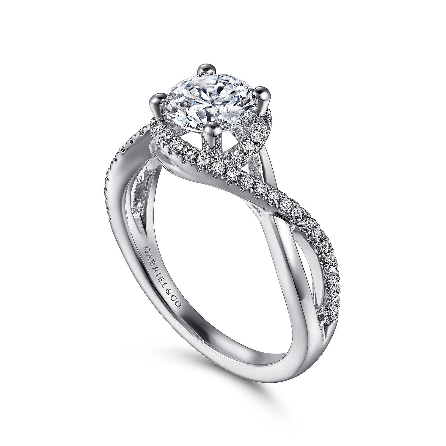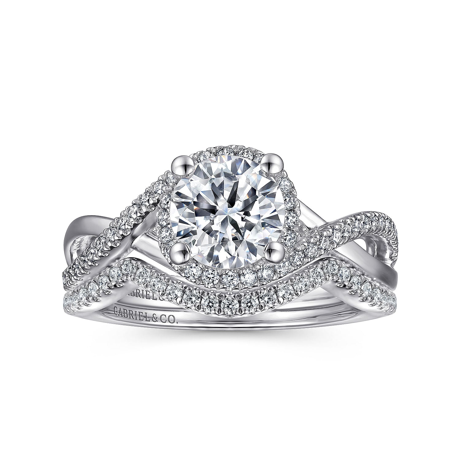 14K White Gold Round Halo Diamond Engagement Ring