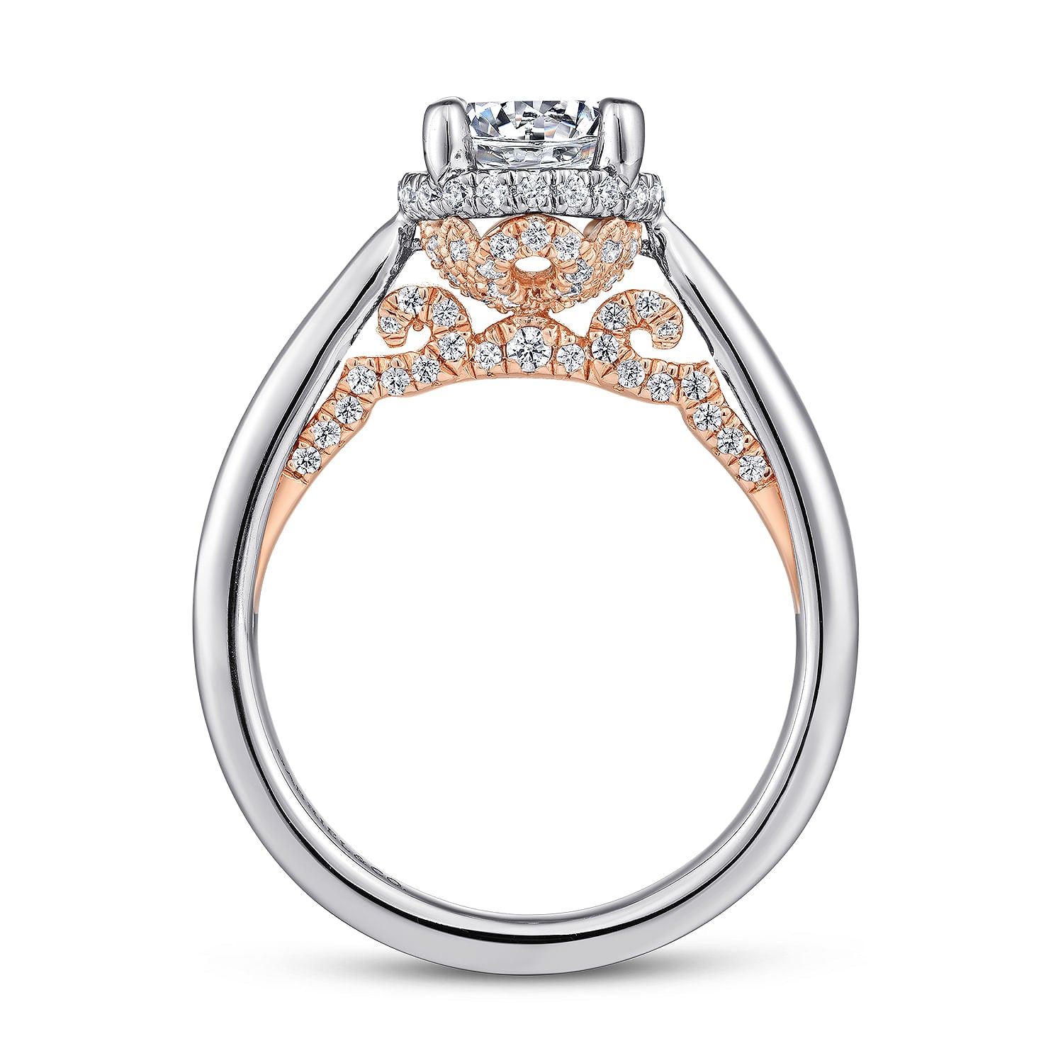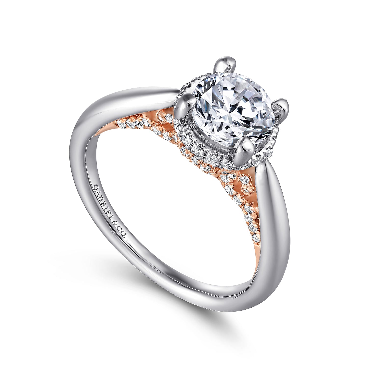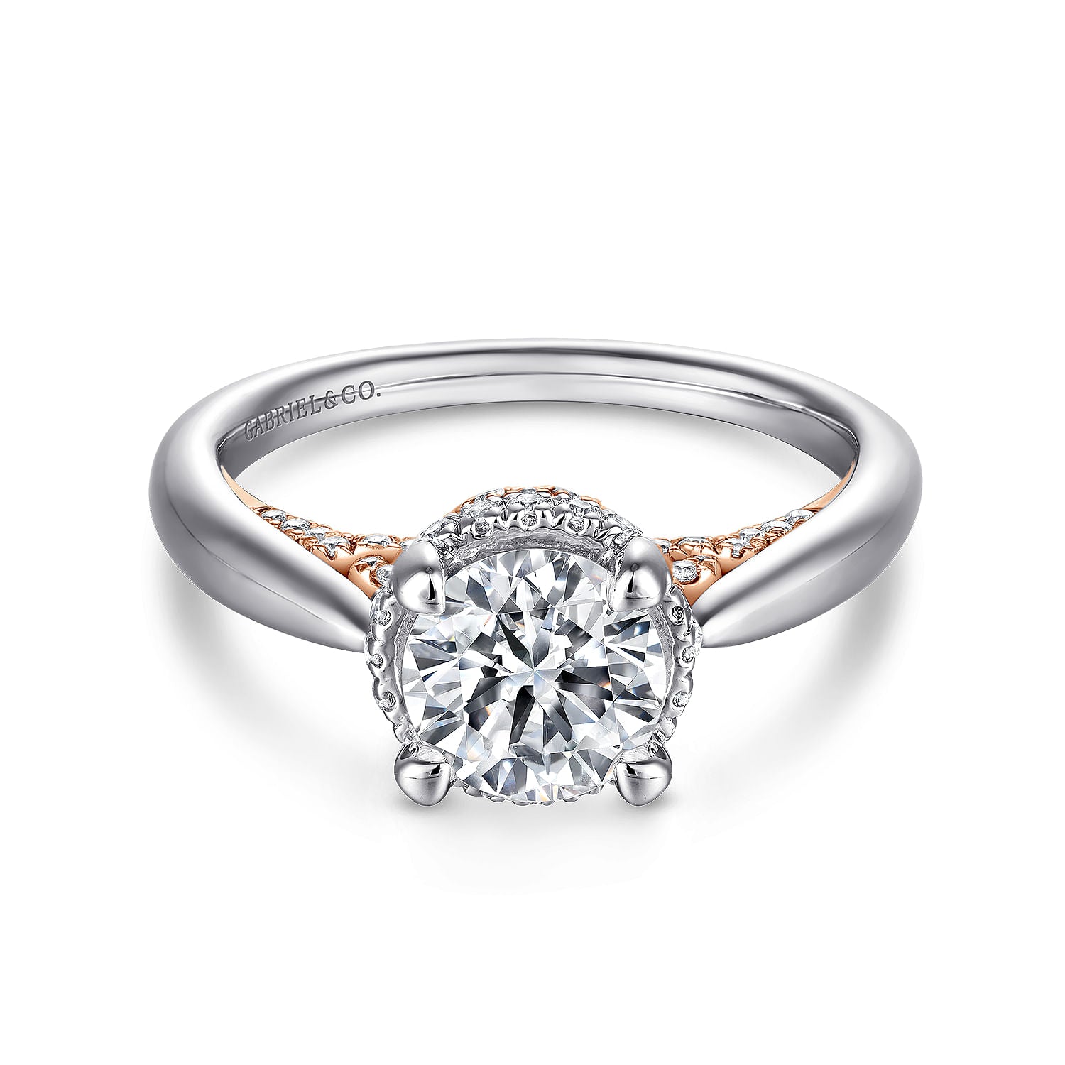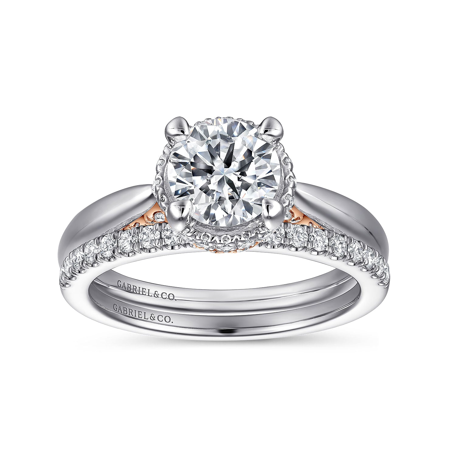 14K White-Rose Gold Hidden Halo Round Diamond Engagement Ring