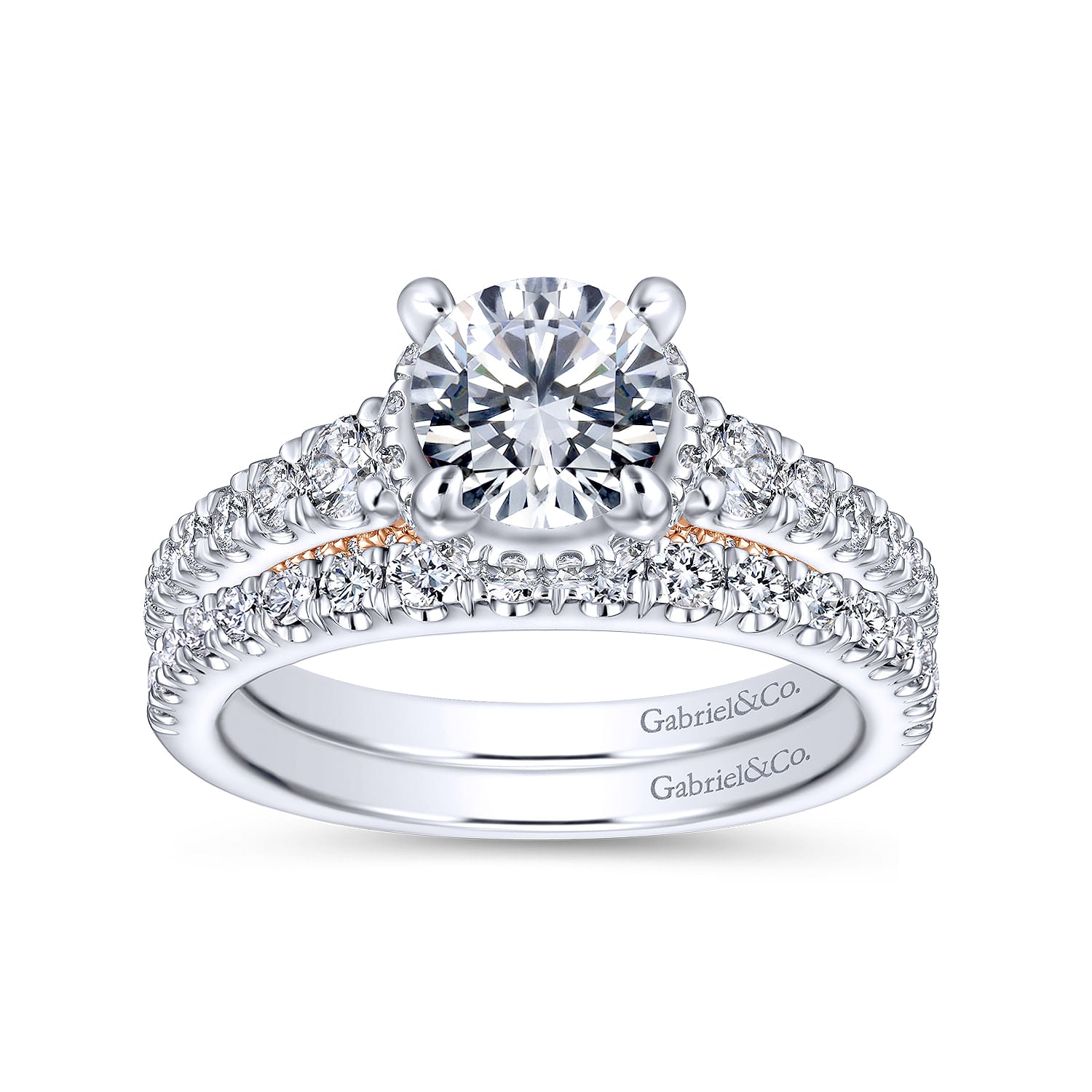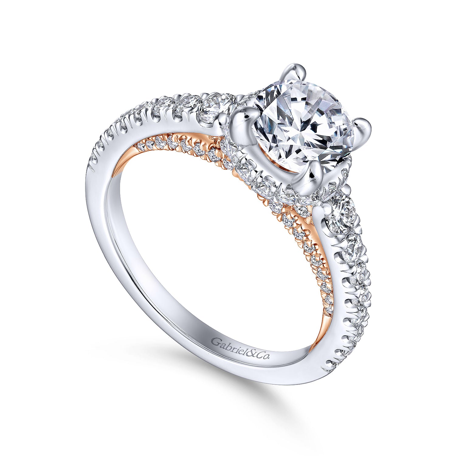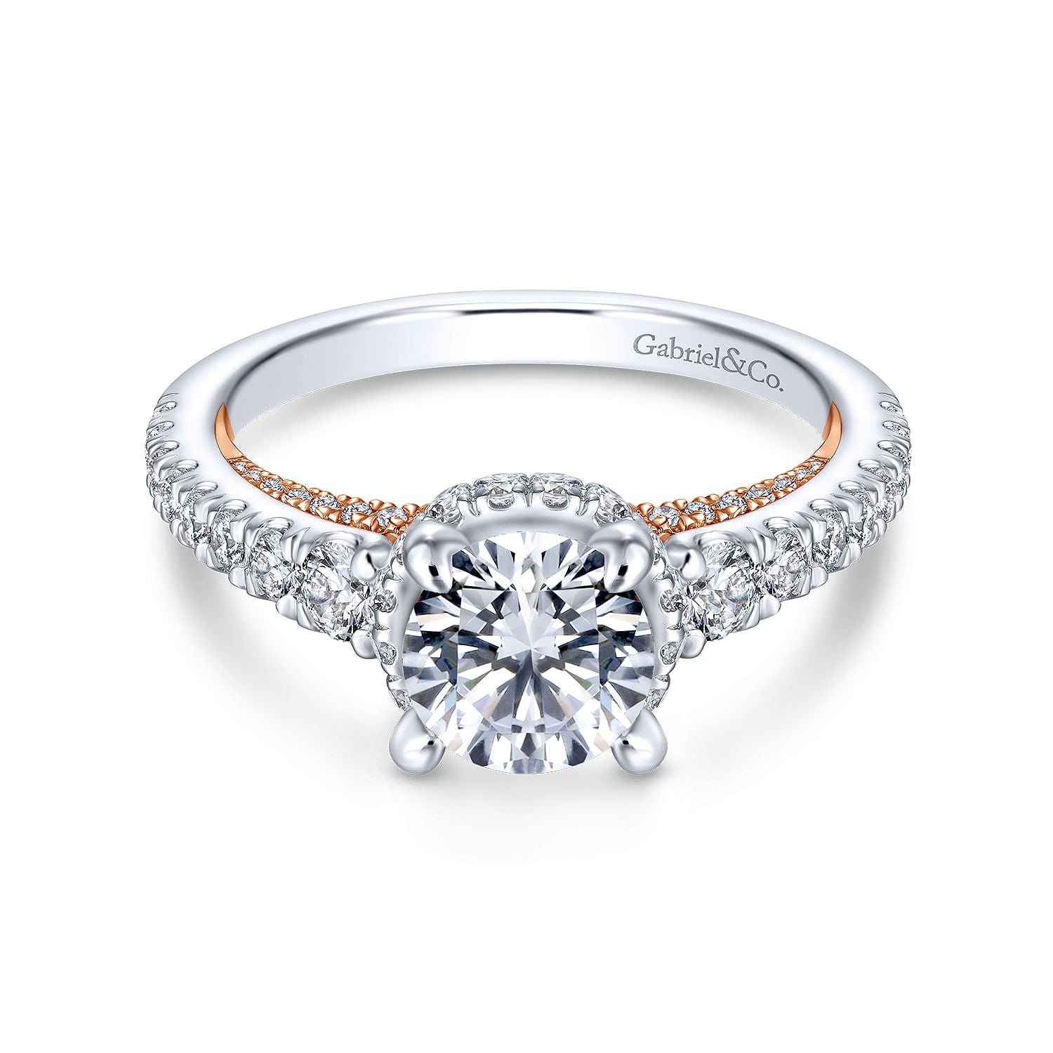 14K White-Rose Gold Hidden Halo Round Diamond Engagement Ring