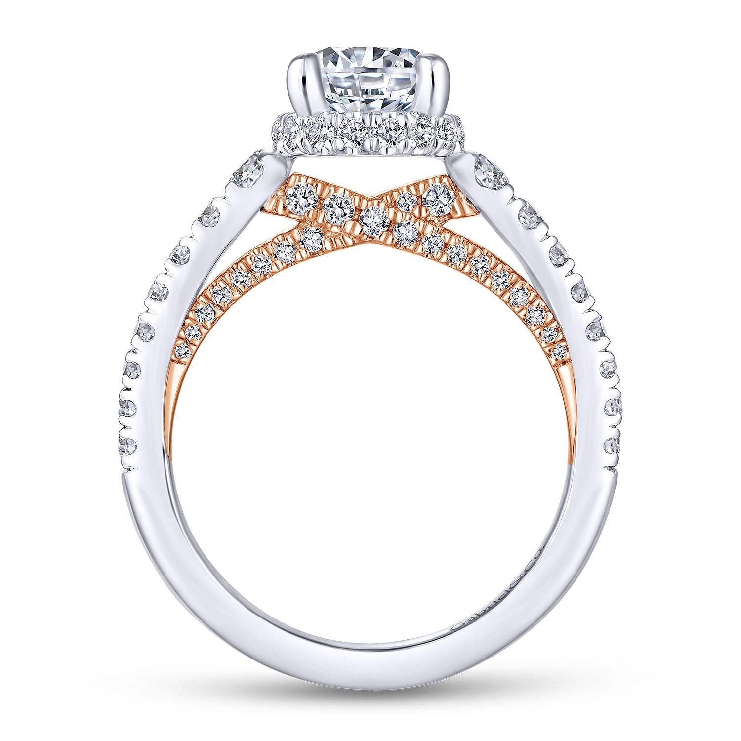 You're reviewing: 14K White-Rose Gold Hidden Halo Round Diamond Engagement Ring