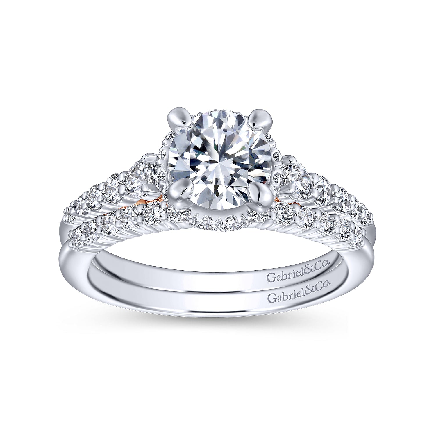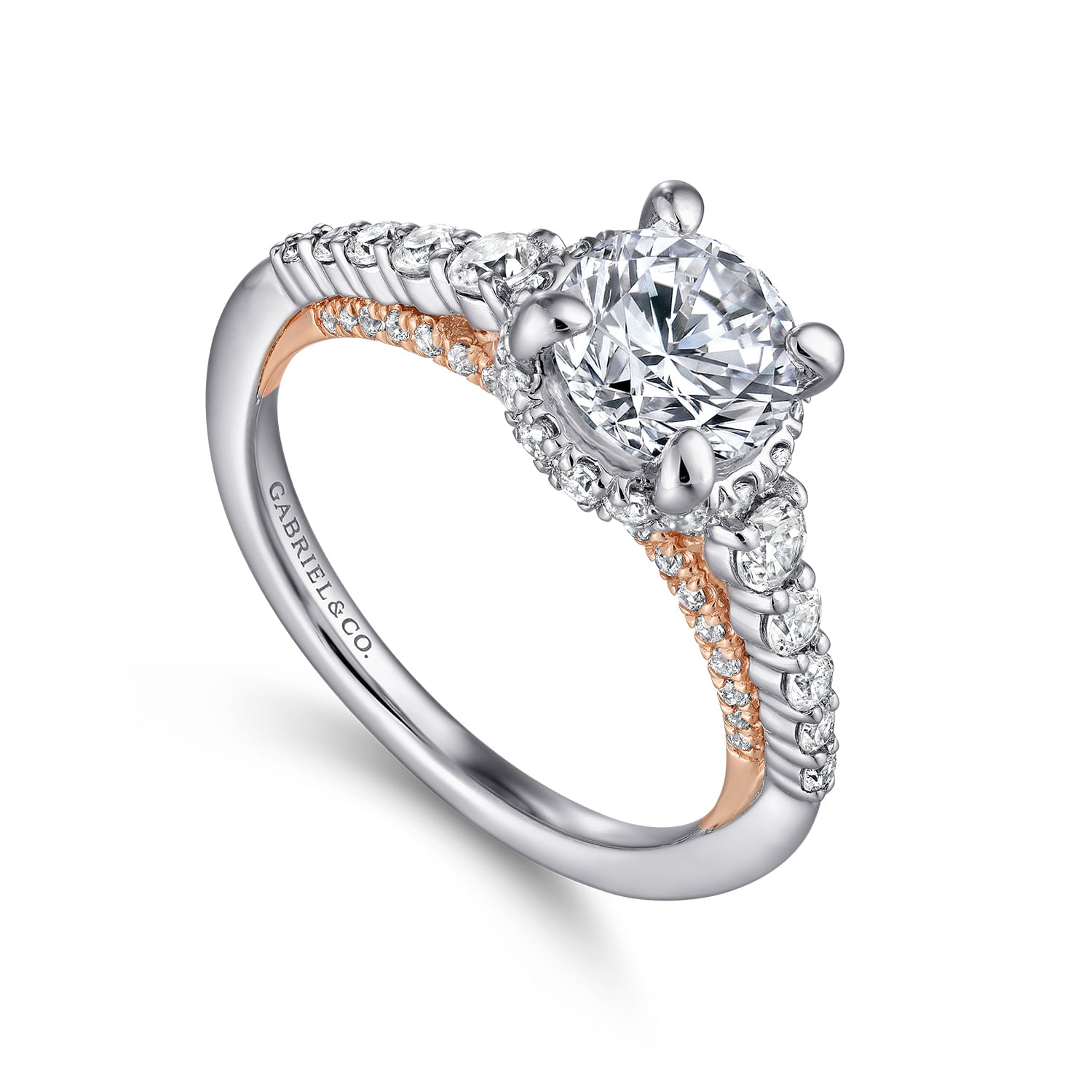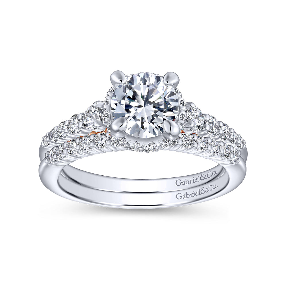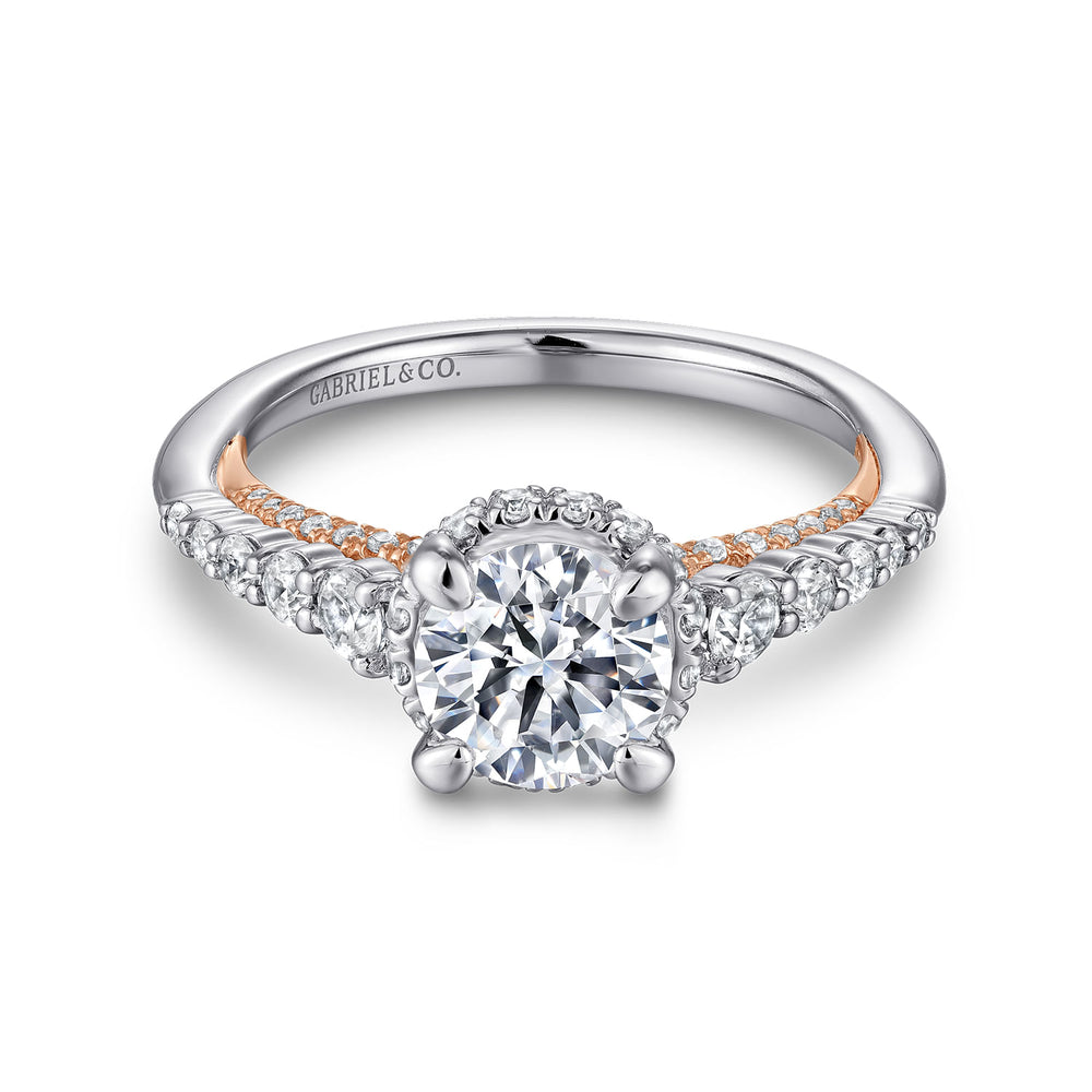 14K White-Rose Gold Hidden Halo Round Diamond Engagement Ring