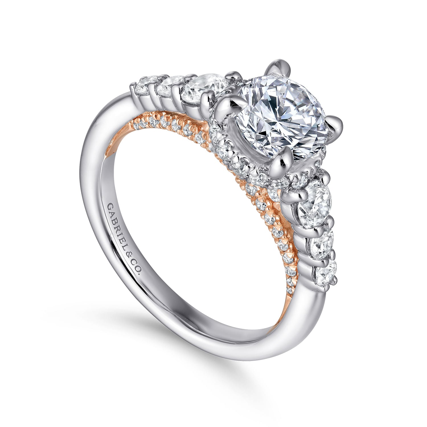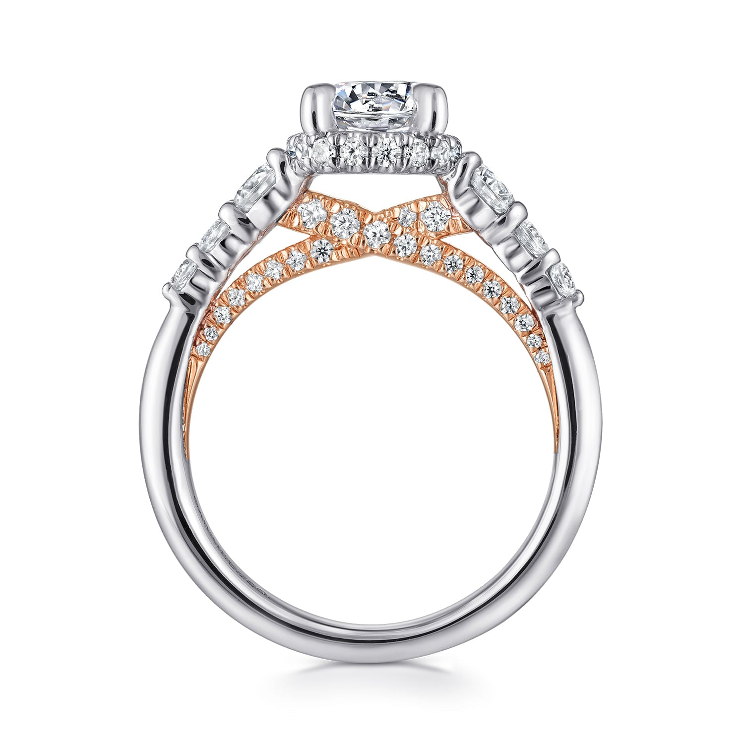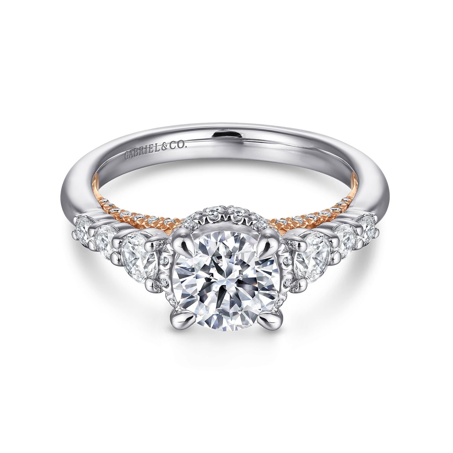 14K White-Rose Gold Hidden Halo Round Diamond Engagement Ring
