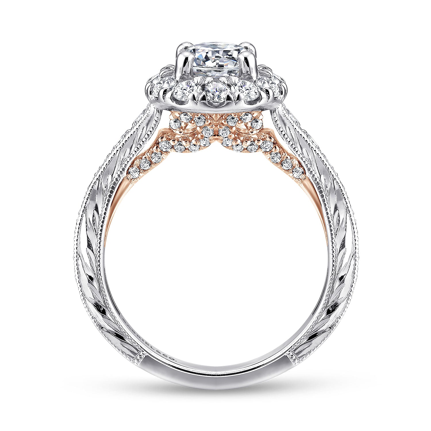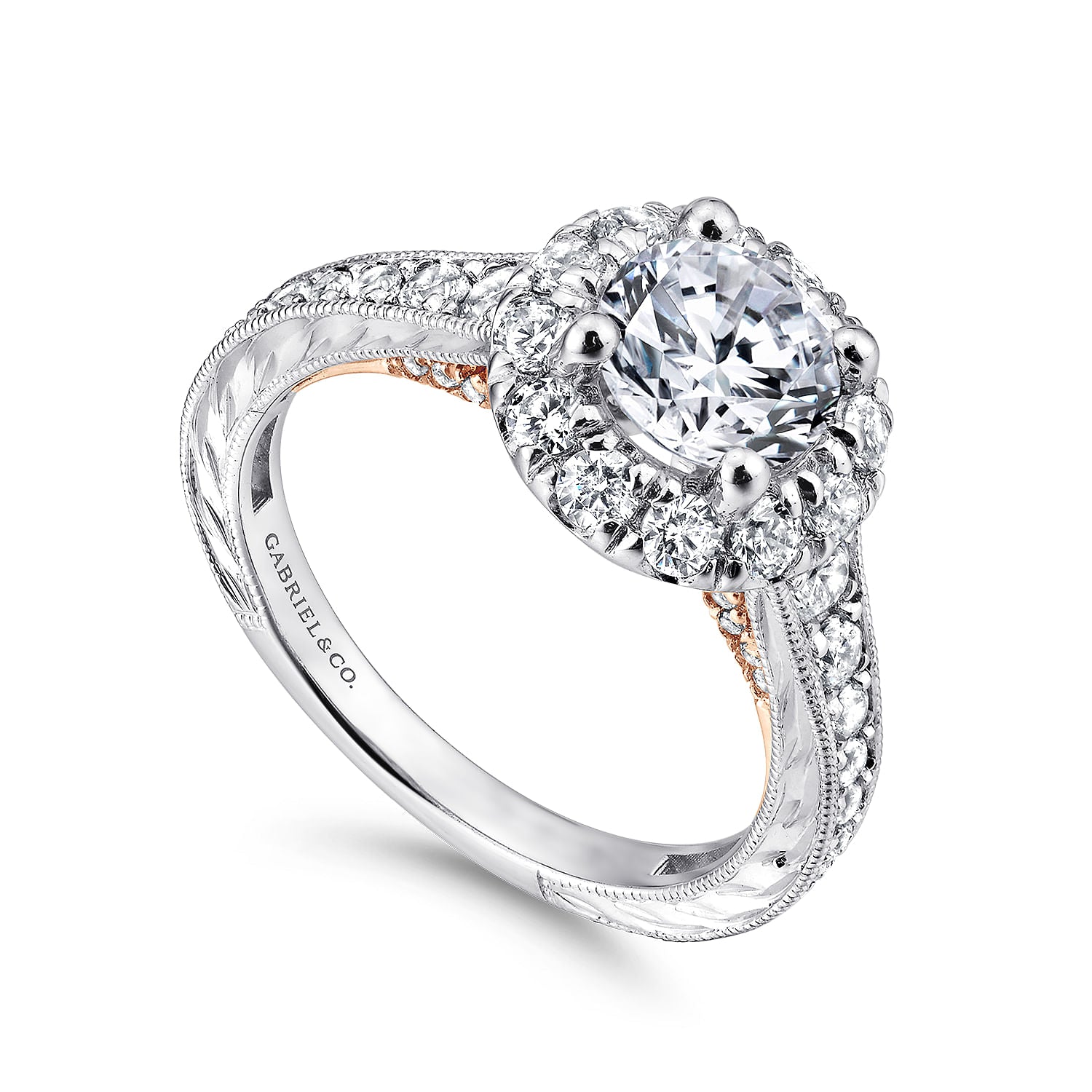 14K White-Rose Gold Round Halo Diamond Engagement Ring