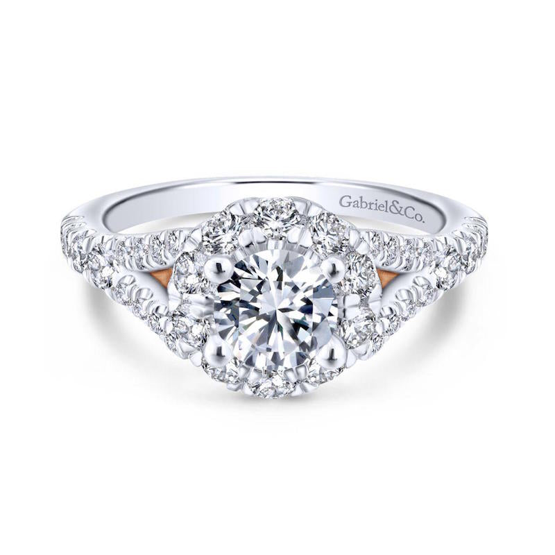 Gabriel & Co. 14k Two Tone Gold Blush Halo Engagement Ring