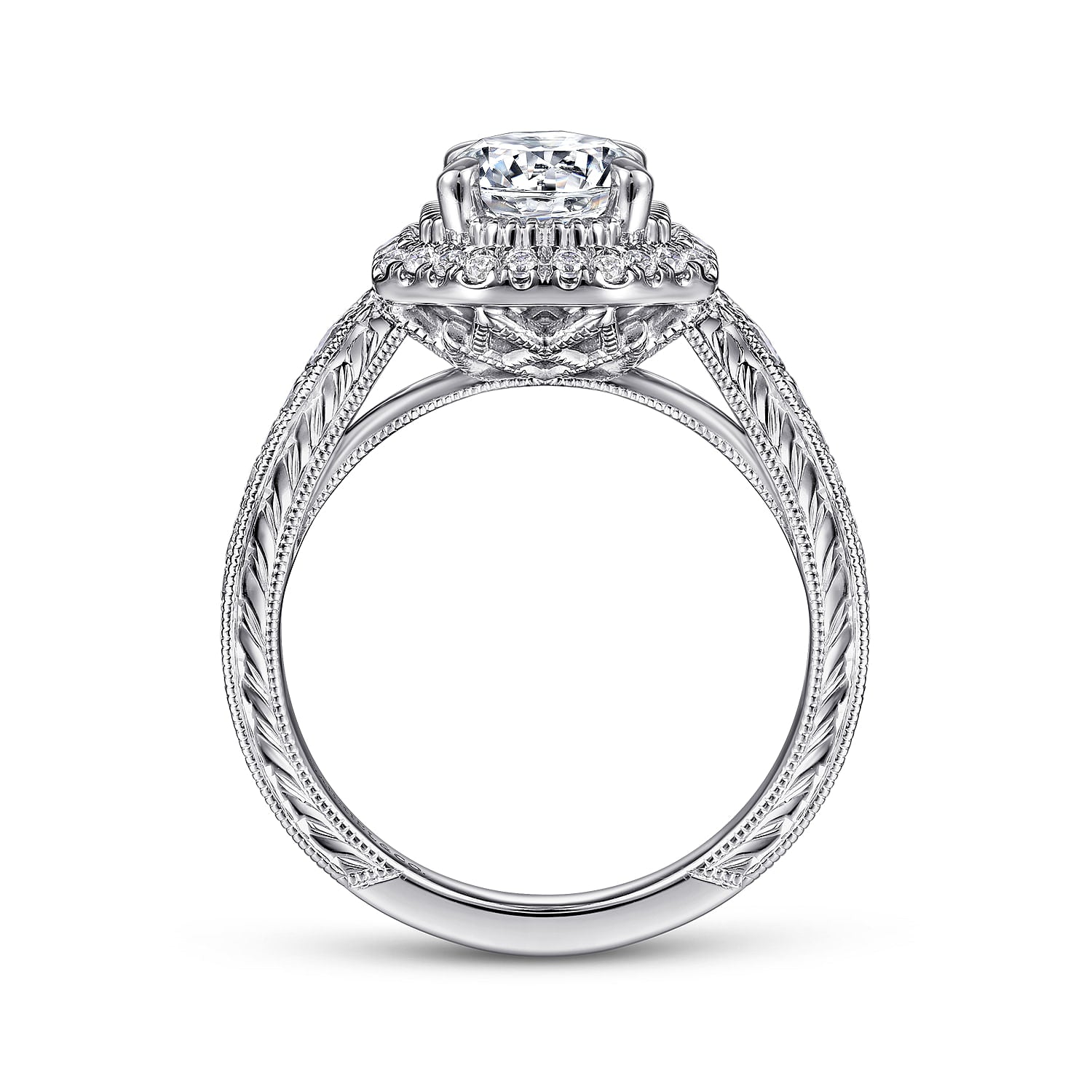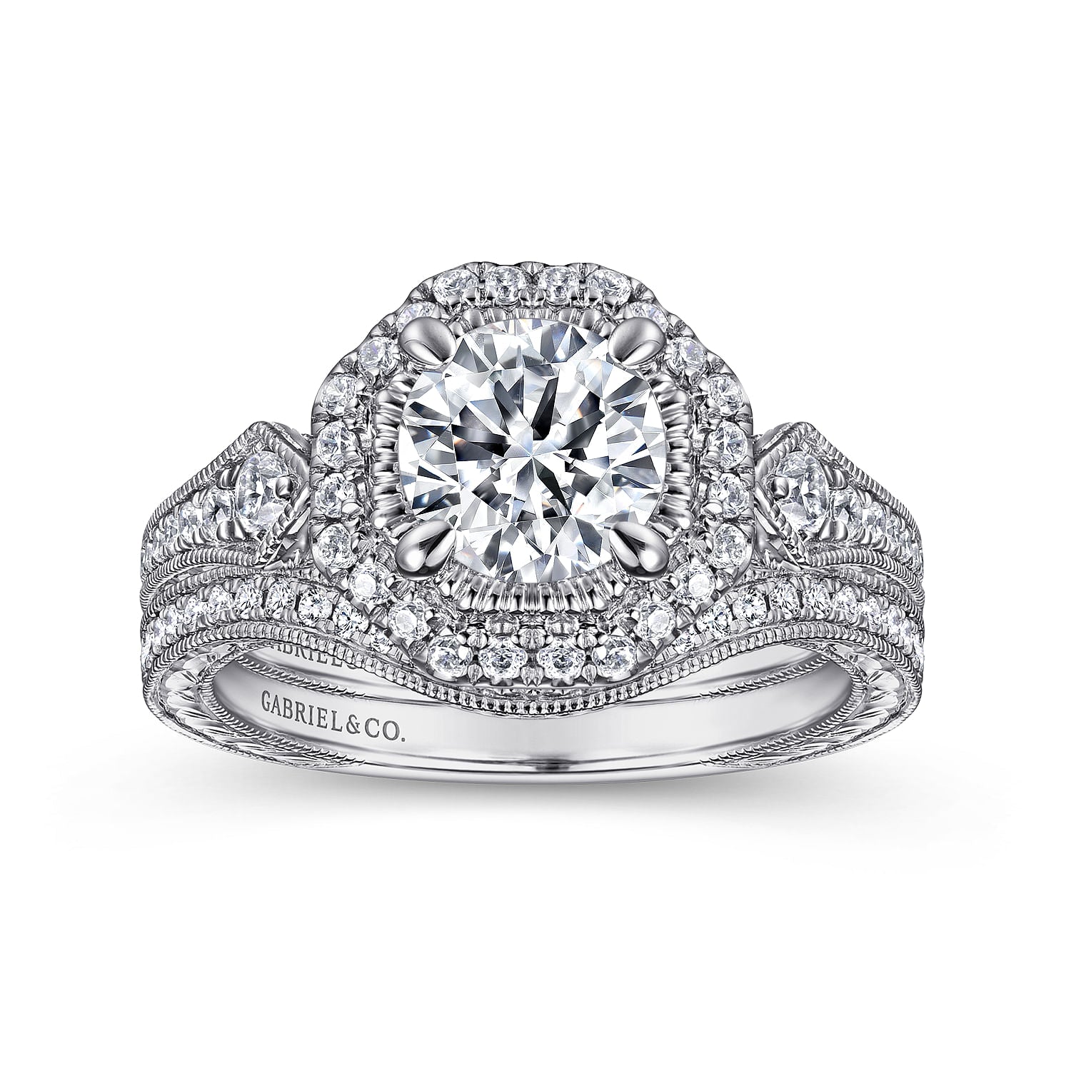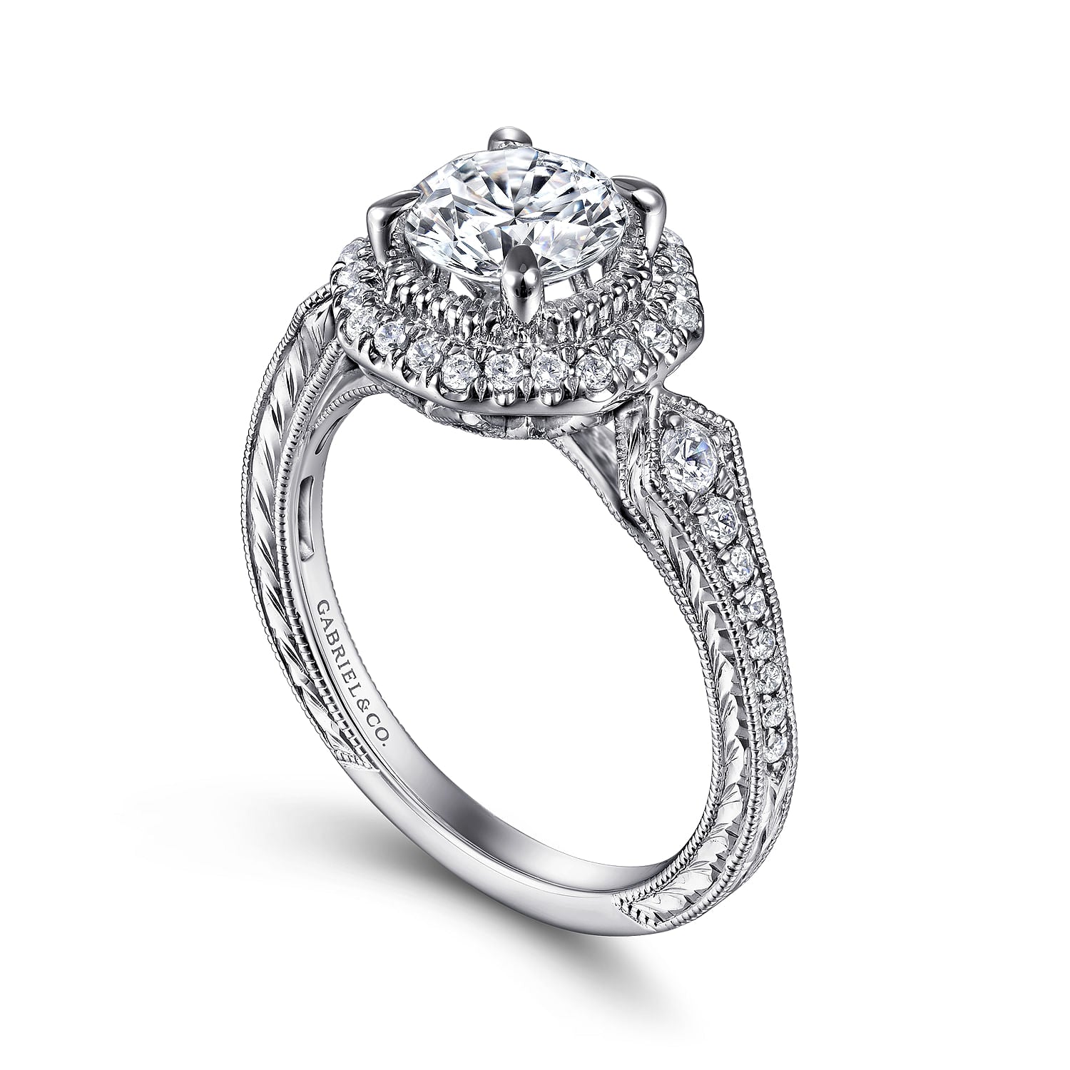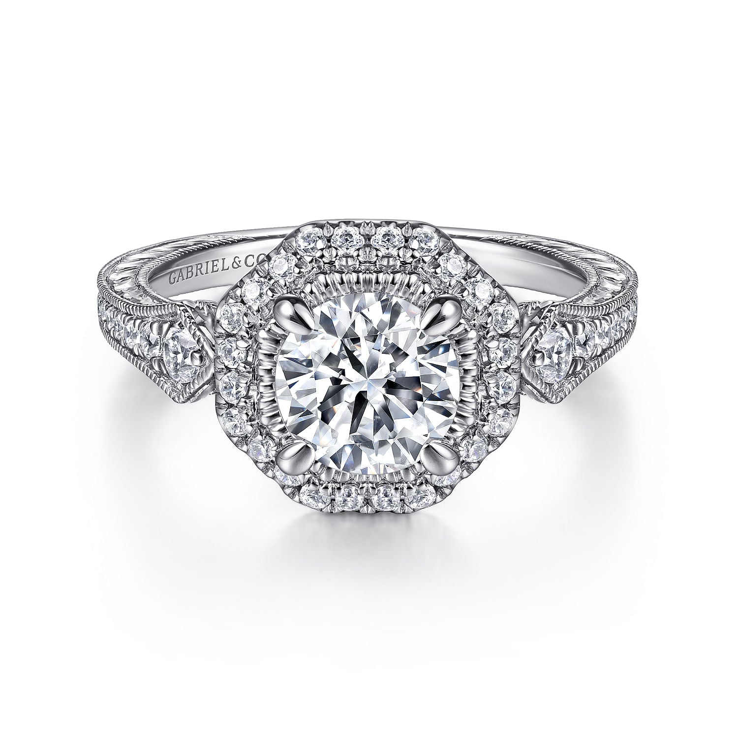 Art Deco 14K White Gold Octagonal Halo Diamond Engagement Ring
