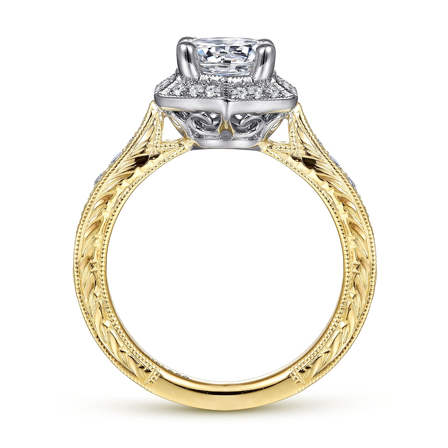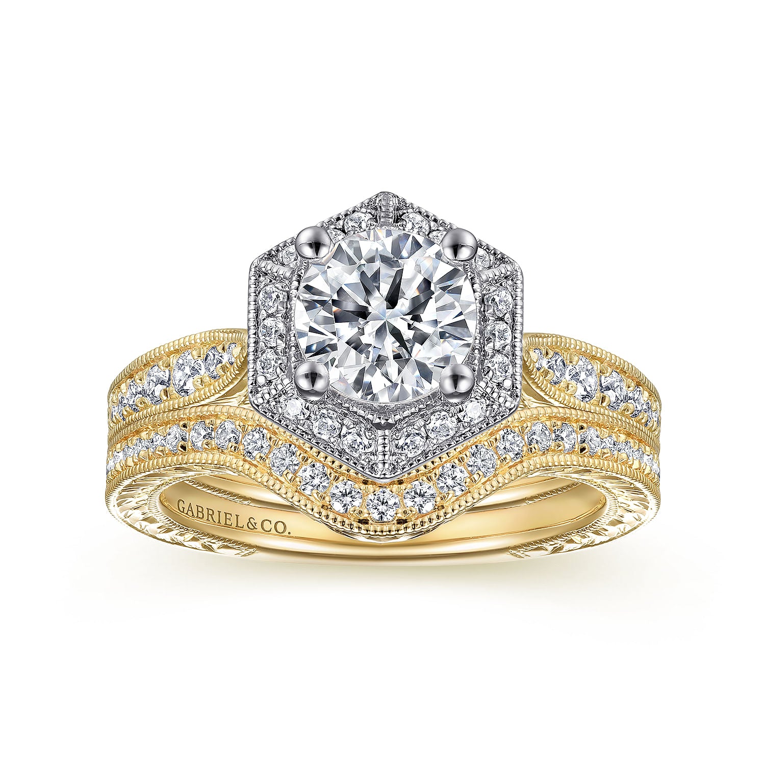 You're reviewing: Art Deco 14K White-Yellow Gold Hexagonal Halo Round Diamond Engagement Ring
