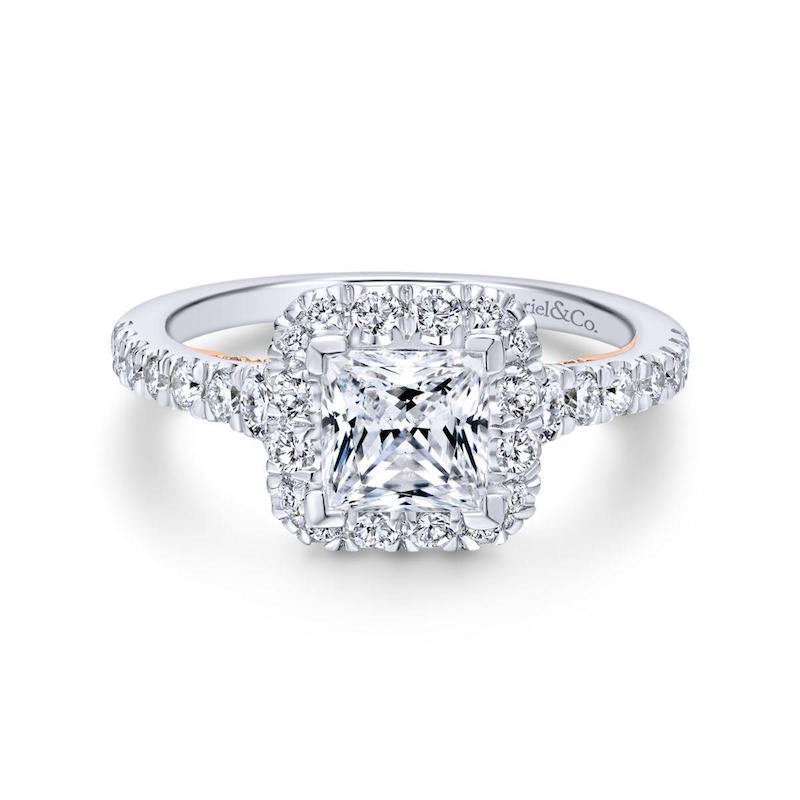 Gabriel & Co. 14k Two Tone Gold Blush Halo Engagement Ring