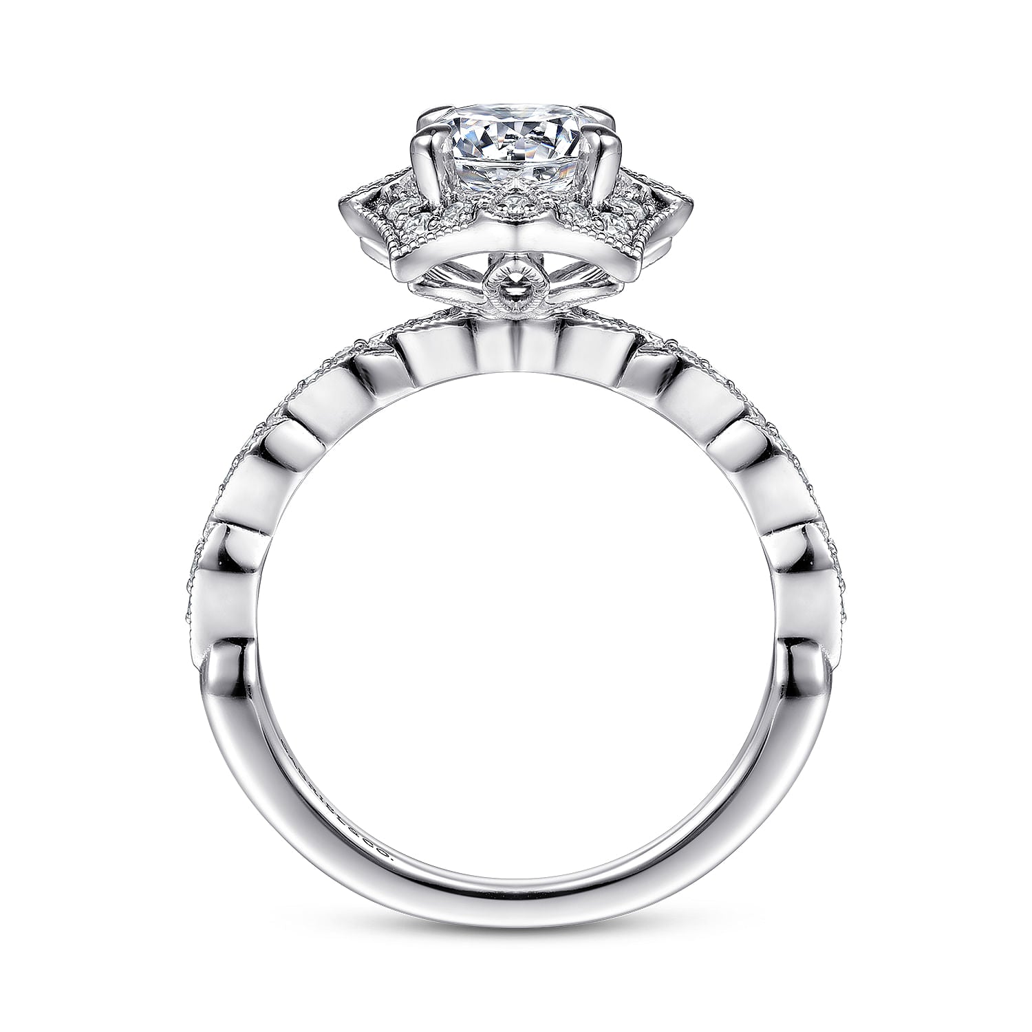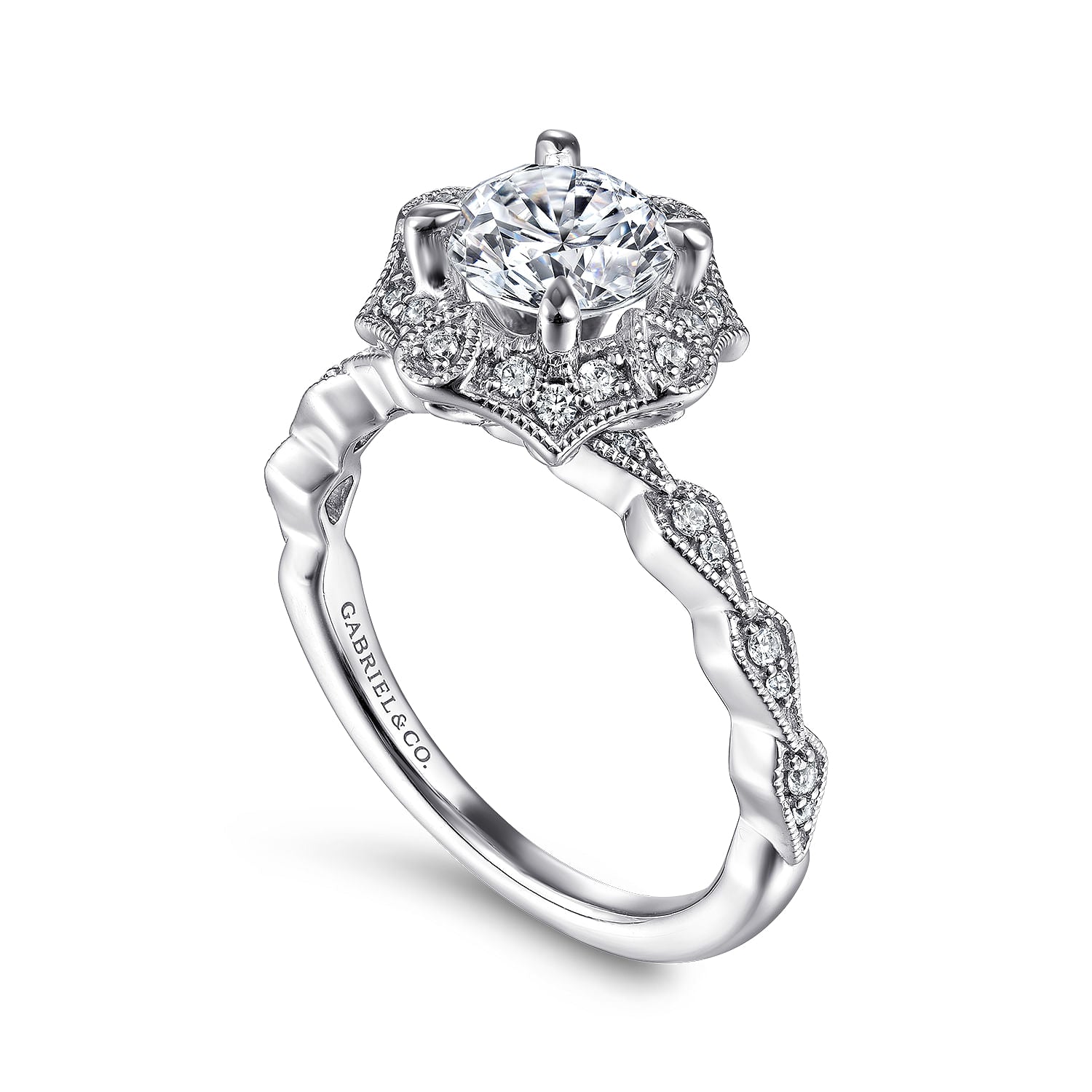 You're reviewing: Unique 14K White Gold Art Deco Halo Diamond Engagement Ring