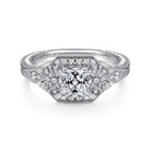 Unique 14K White Gold Art Deco Princess Halo Diamond Engagement Ring