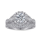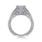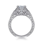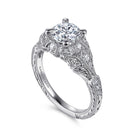 Unique 14K White Gold Vintage Inspired Diamond Halo Engagement Ring
