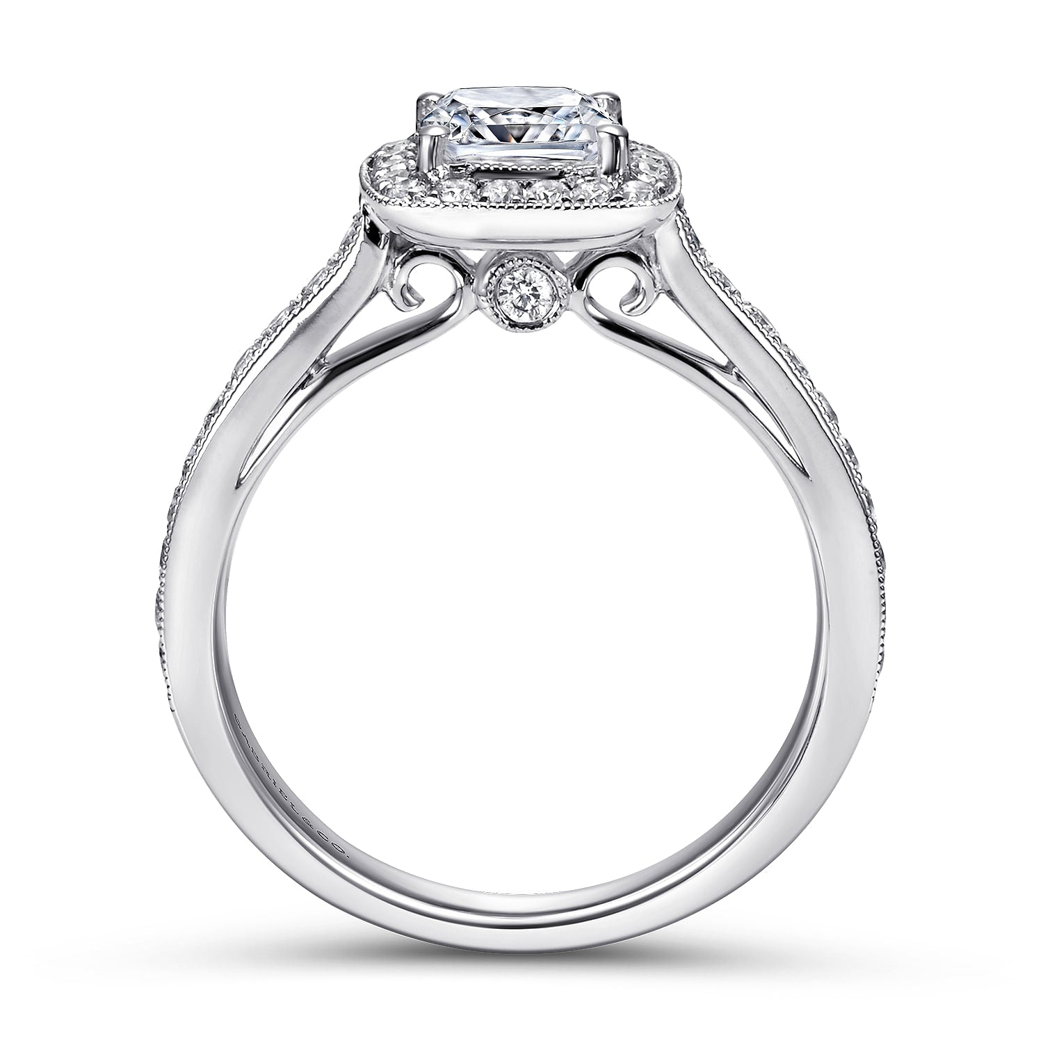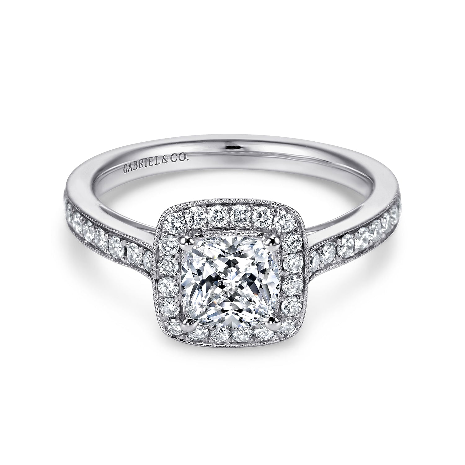 Vintage Inspired 14K White Gold Cushion Halo Diamond Engagement Ring