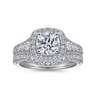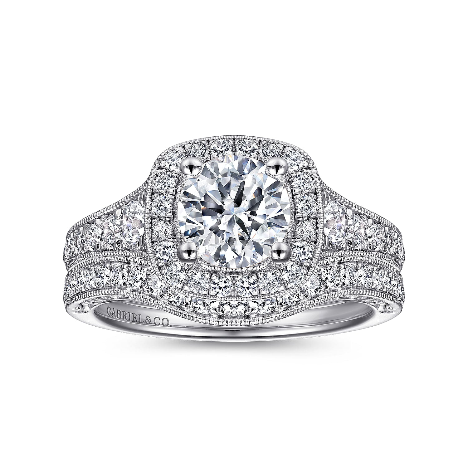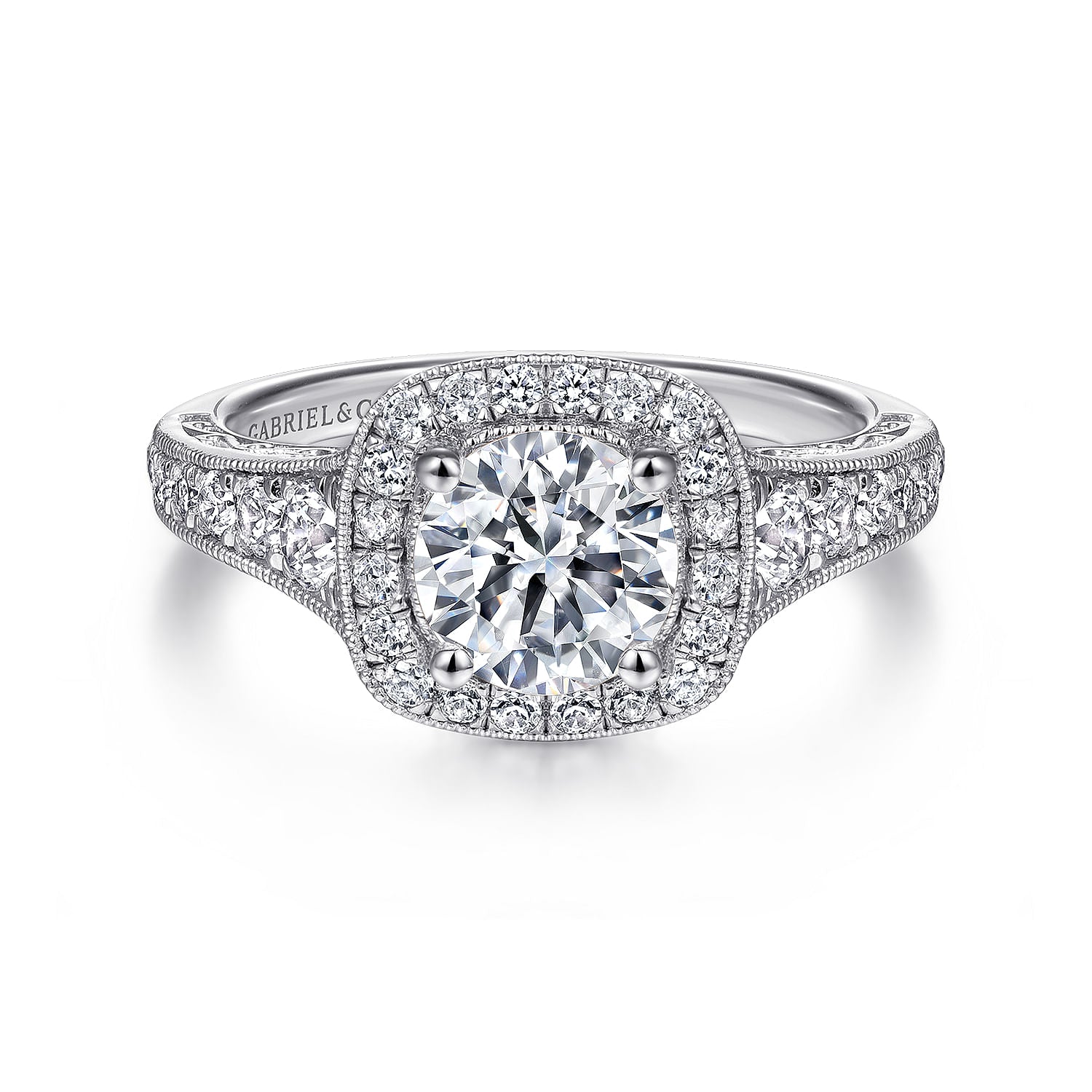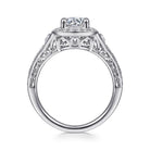 Vintage Inspired 14K White Gold Cushion Halo Round Diamond Engagement Ring