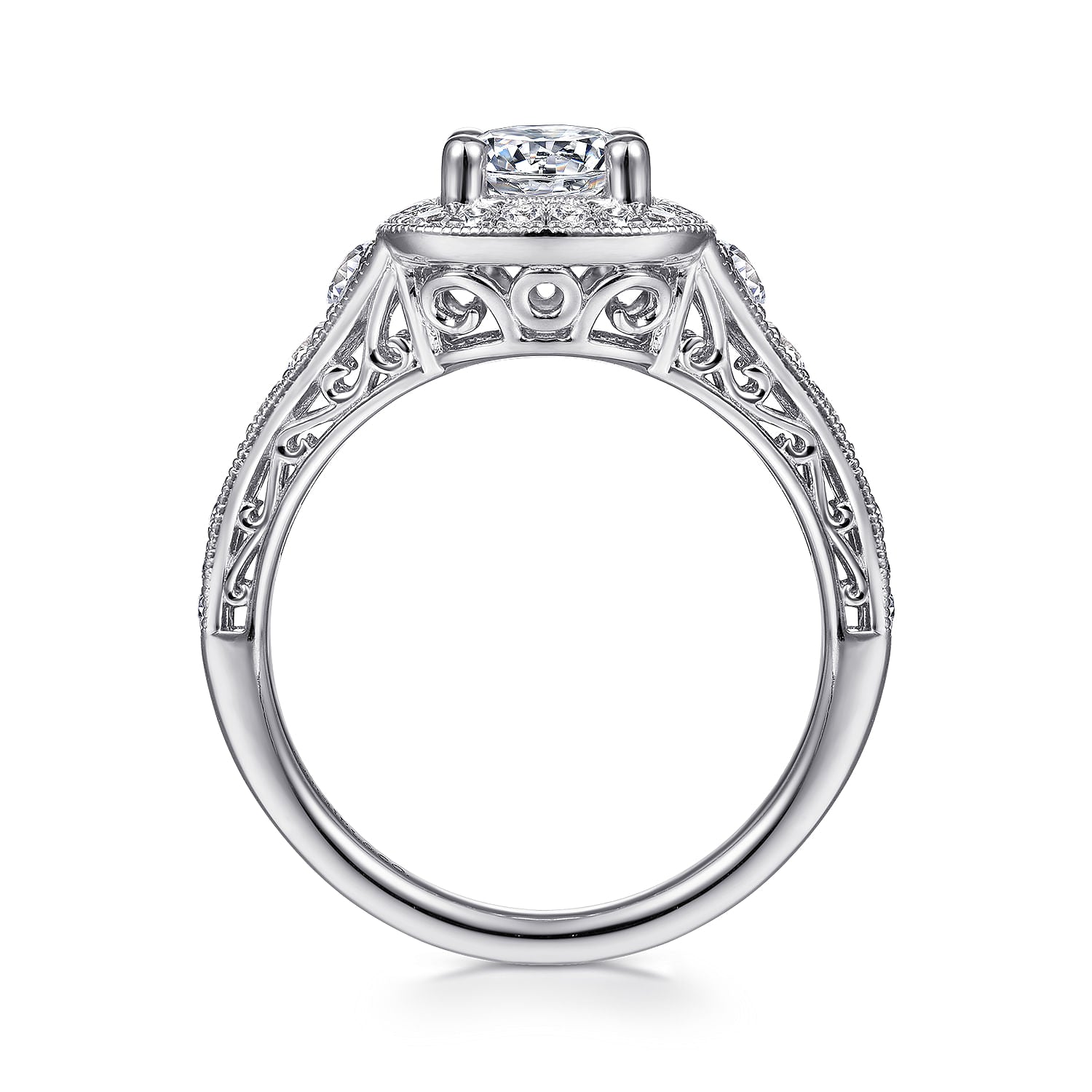 You're reviewing: Vintage Inspired 14K White Gold Cushion Halo Round Diamond Engagement Ring