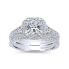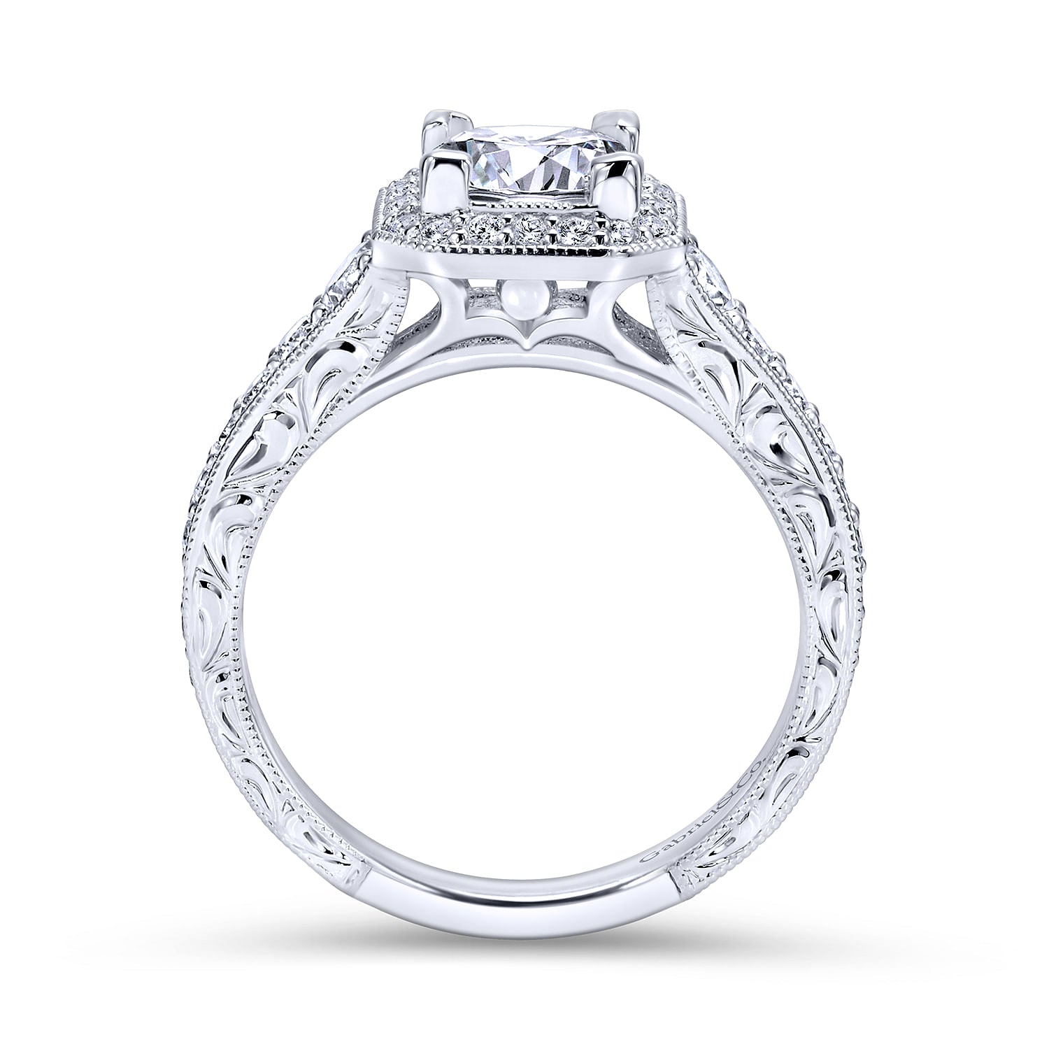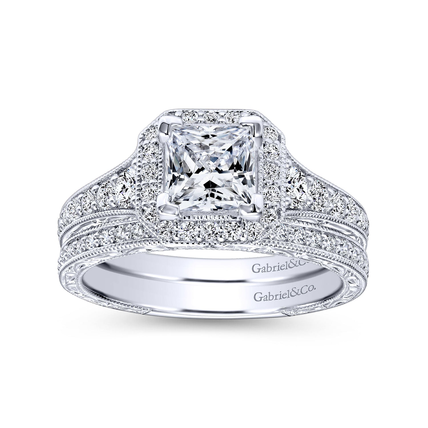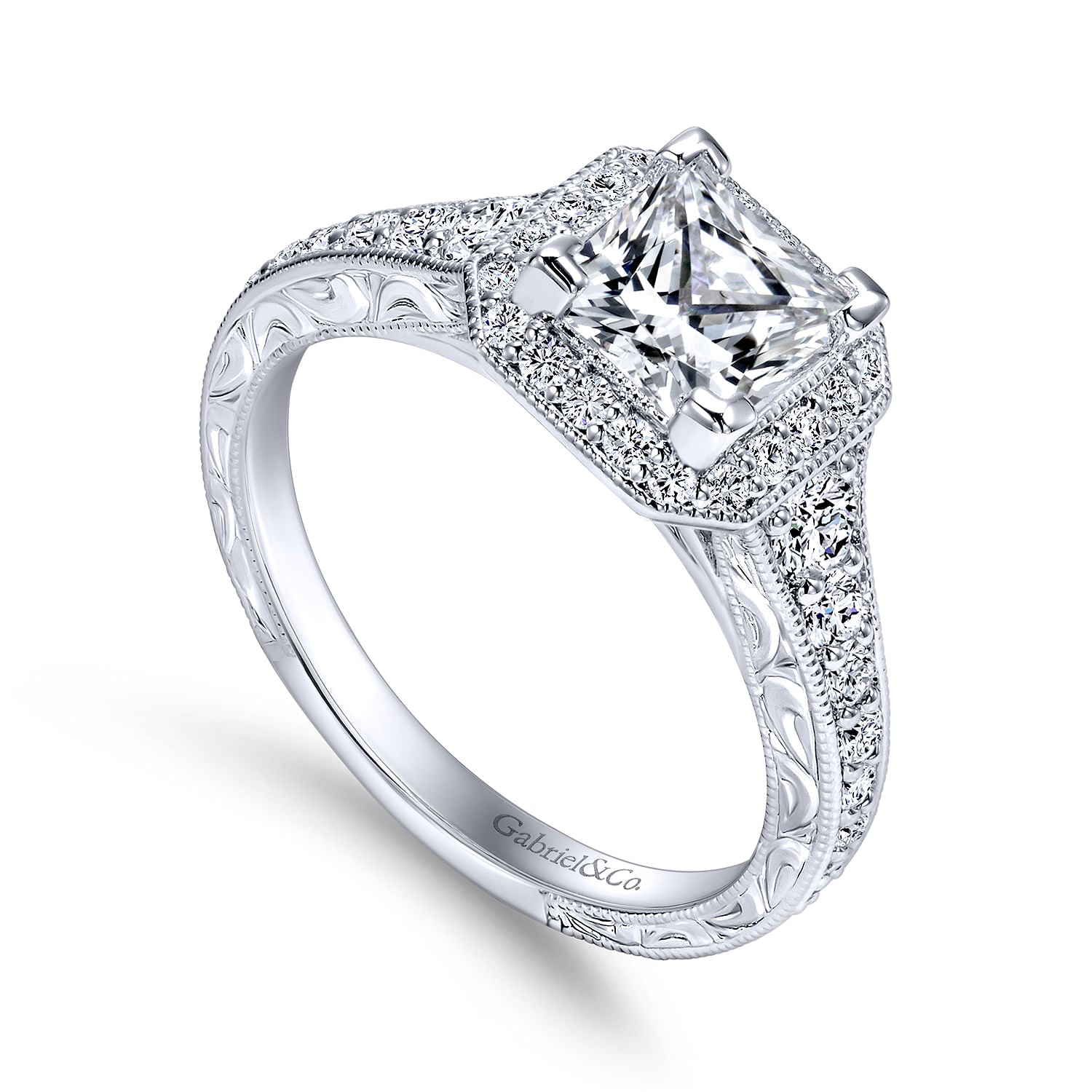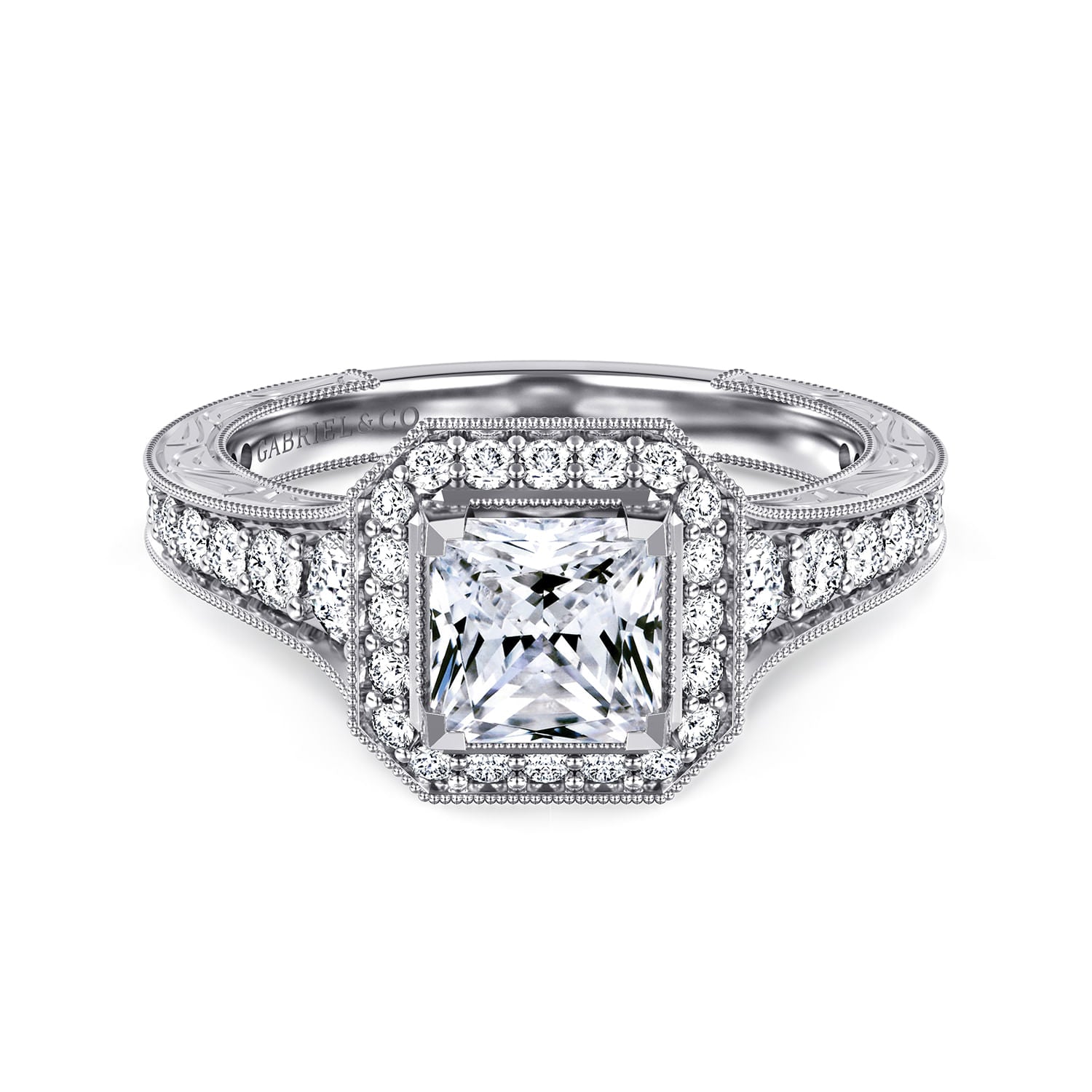 Vintage Inspired 14K White Gold Princess Halo Diamond Engagement Ring