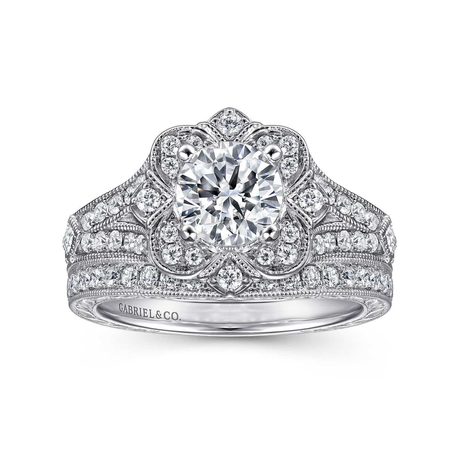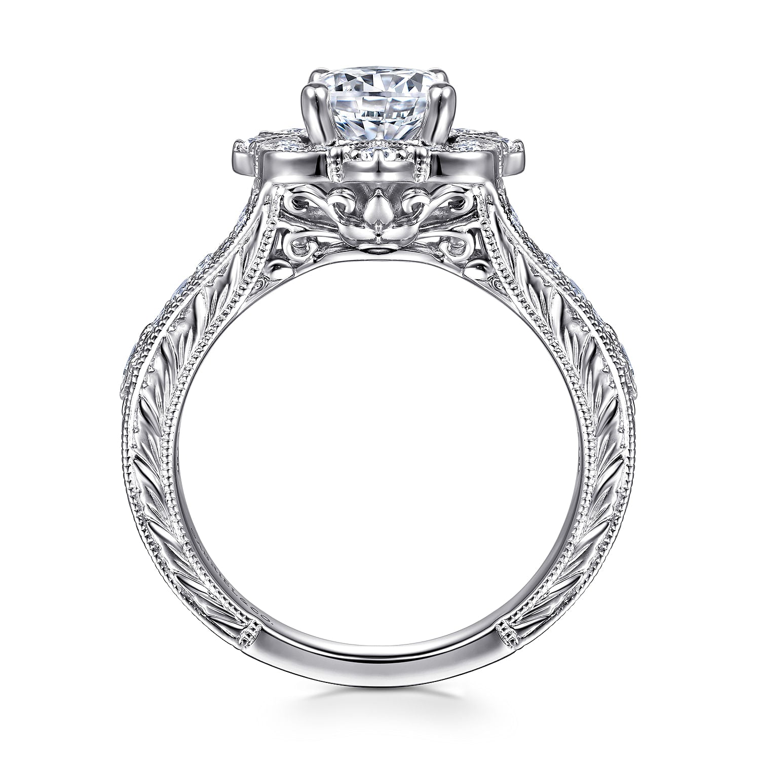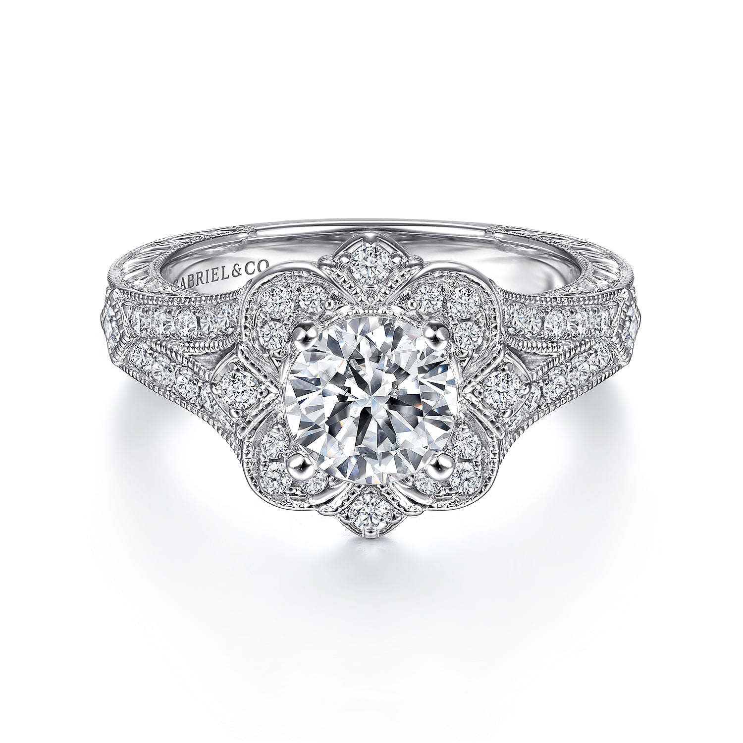 Vintage Inspired 14K White Gold Round Halo Diamond Engagement Ring