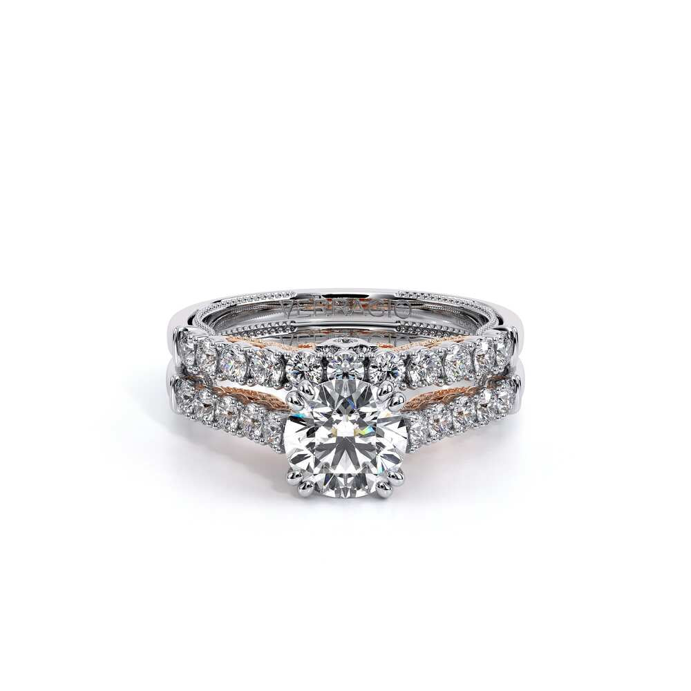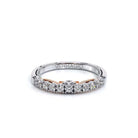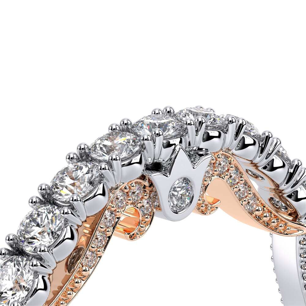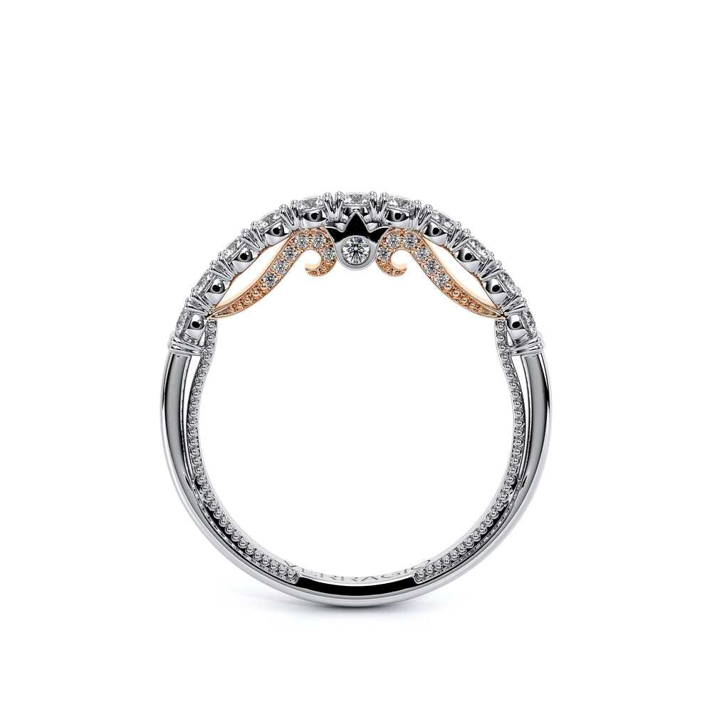 INSIGNIA-7097W diamond wedding ring from the Insignia Collection. Featuring a shared-prong set band with round brilliant-cut diamonds. Distinguished by handcrafted diamond Insignia scrollwork amid Verragio's signature beading and crest.amonds.
