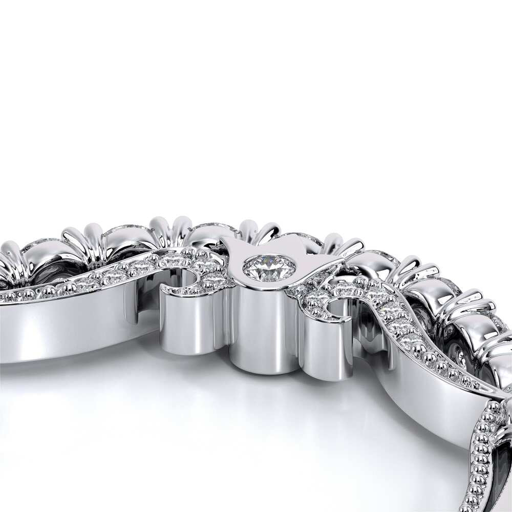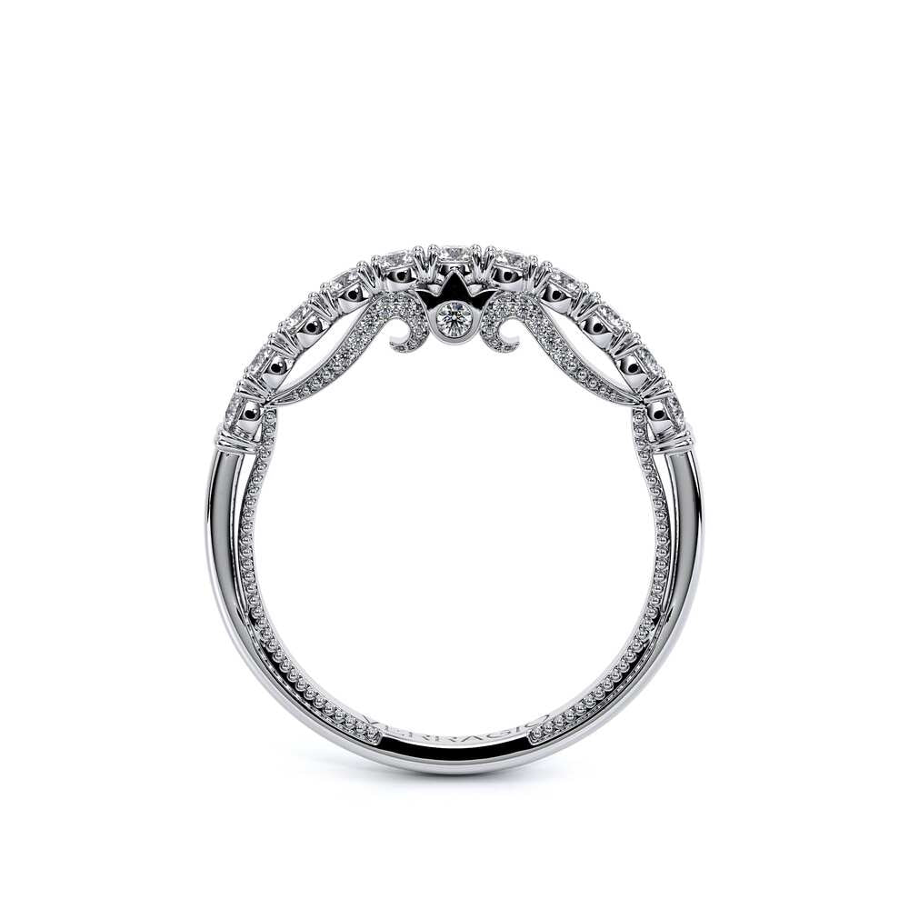 INSIGNIA-7097W diamond wedding ring from the Insignia Collection. Featuring a shared-prong set band with round brilliant-cut diamonds. Distinguished by handcrafted diamond Insignia scrollwork amid Verragio's signature beading and crest.amonds.