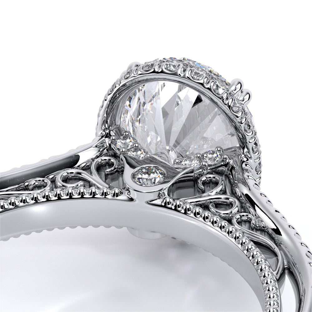 VENETIAN-5081OV engagement ring features our Stardust Halo made for an Oval center seamlessly seated on top of four diamond encrusted prongs. The delicate shank is adorned with graduating round brilliant diamonds. This gorgeous ring stands timeless as is. Make it yours today.