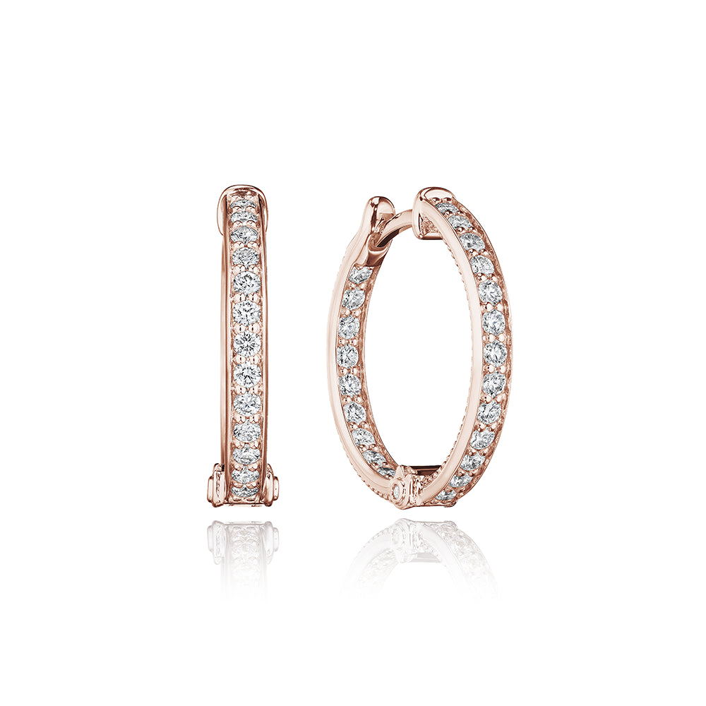 Choose the 18k rose gold Veritage Felicity Diamond Hoop earrings. These chic and timeless 22mm diamond hoops create a sophisticated look.