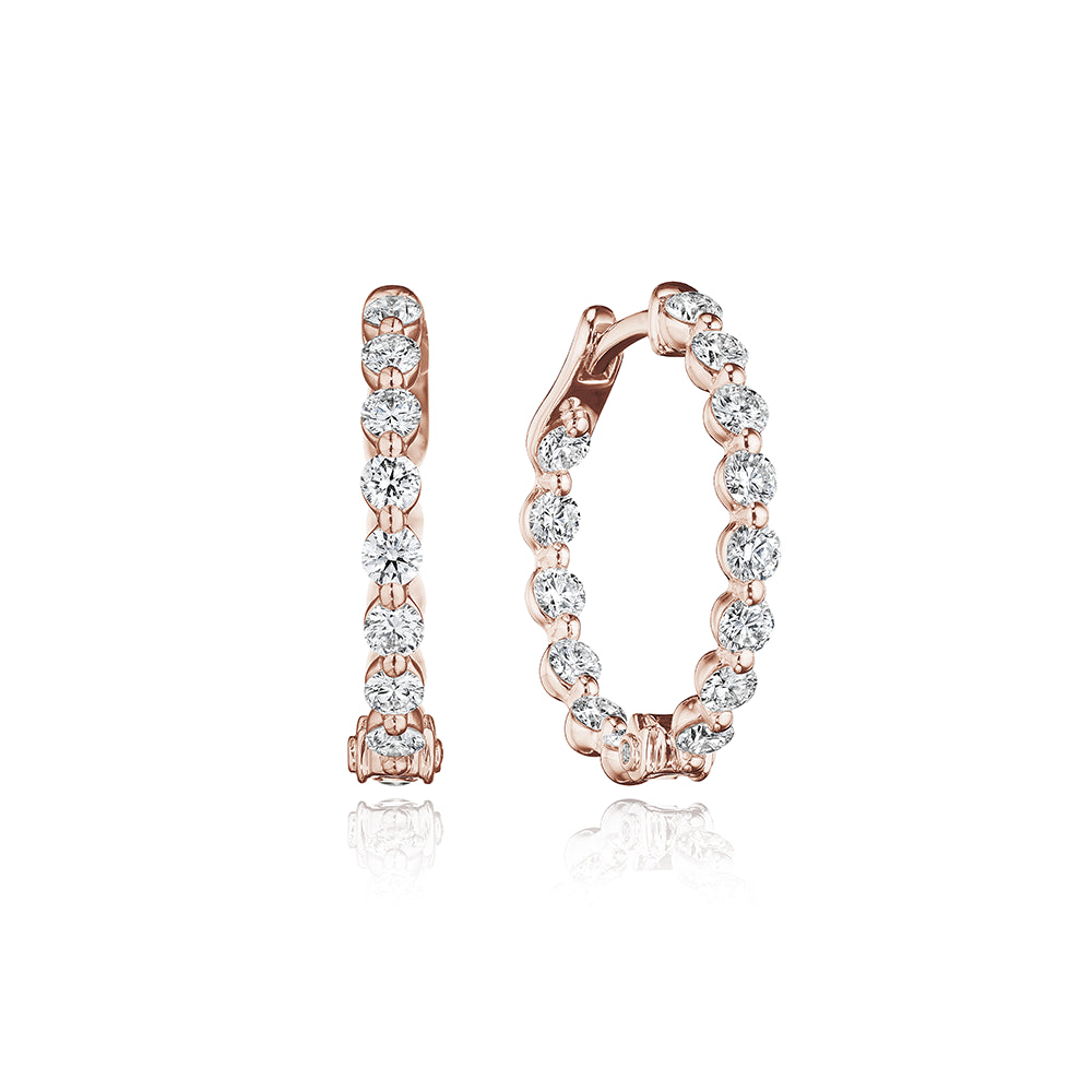 The perfect luxurious accessory for any look, beautiful 18k rose gold Majesty 22mm diamond hoop earrings bring brilliant sparkle to your days.