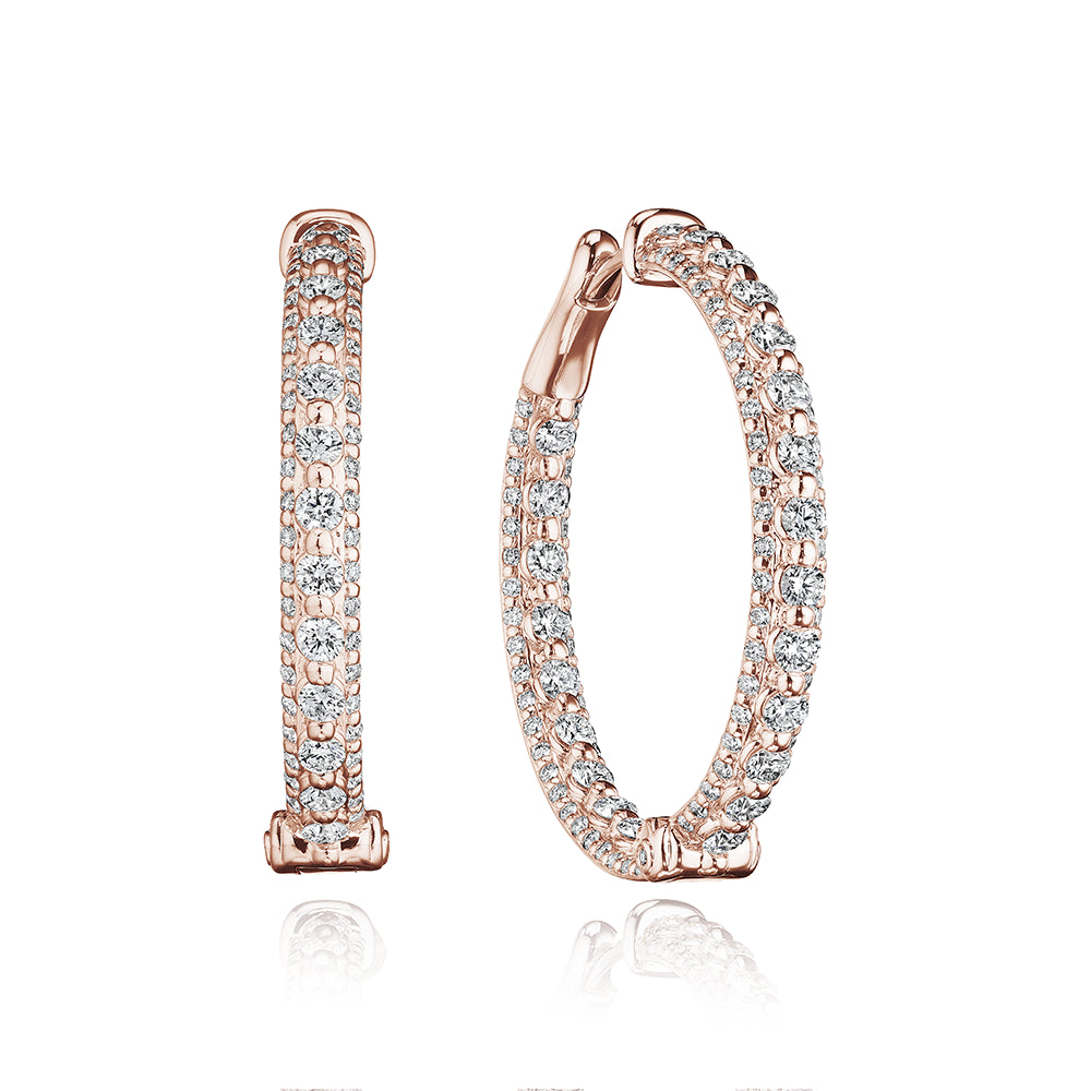 Adorn yourself with classic Royalty 30mm diamond hoops from the Veritage Collection. In 18k rose gold, adorned with luxurious diamonds for a stunningly timeless look.