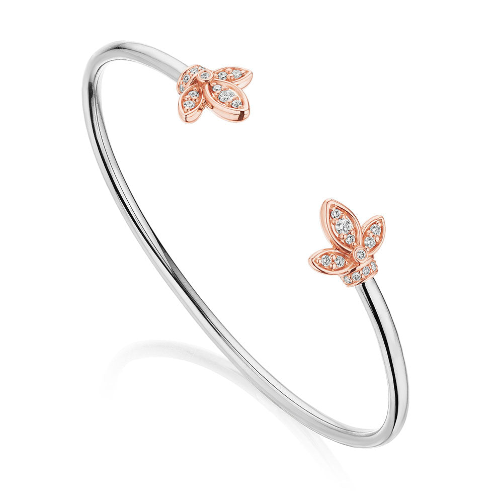 J-0461701-TC 18K white and rose gold diamond bangle with 0.28ctw diamonds.