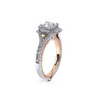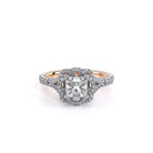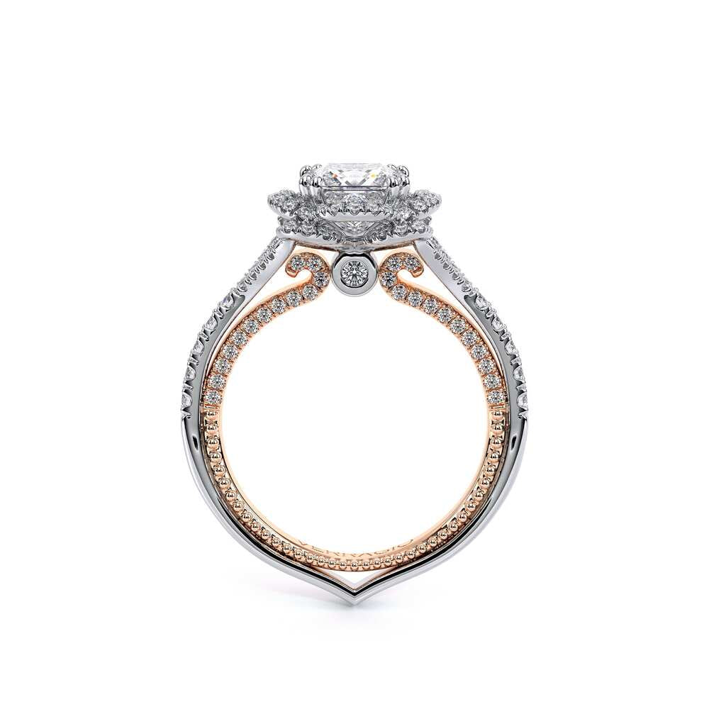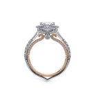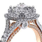 COUTURE-0444P One of a Kind Double Floret Engagement ring that features a pave set cathedral diamond band, the subtle sparkle of our half diamond Riviera, adorned with the Verragio Crest and our Verragio Signature Beading, completed with the Couture shank.