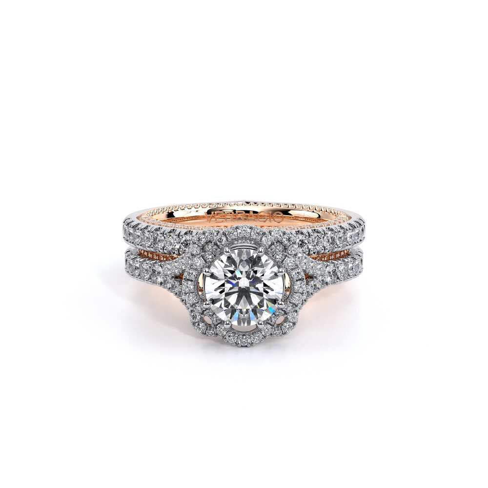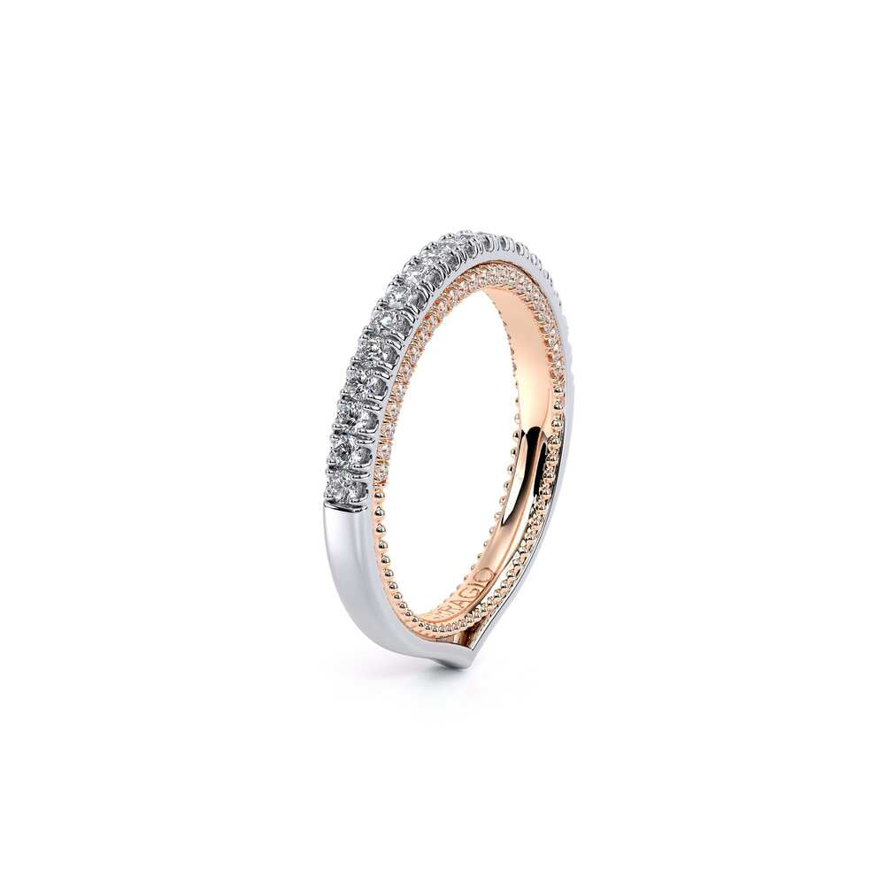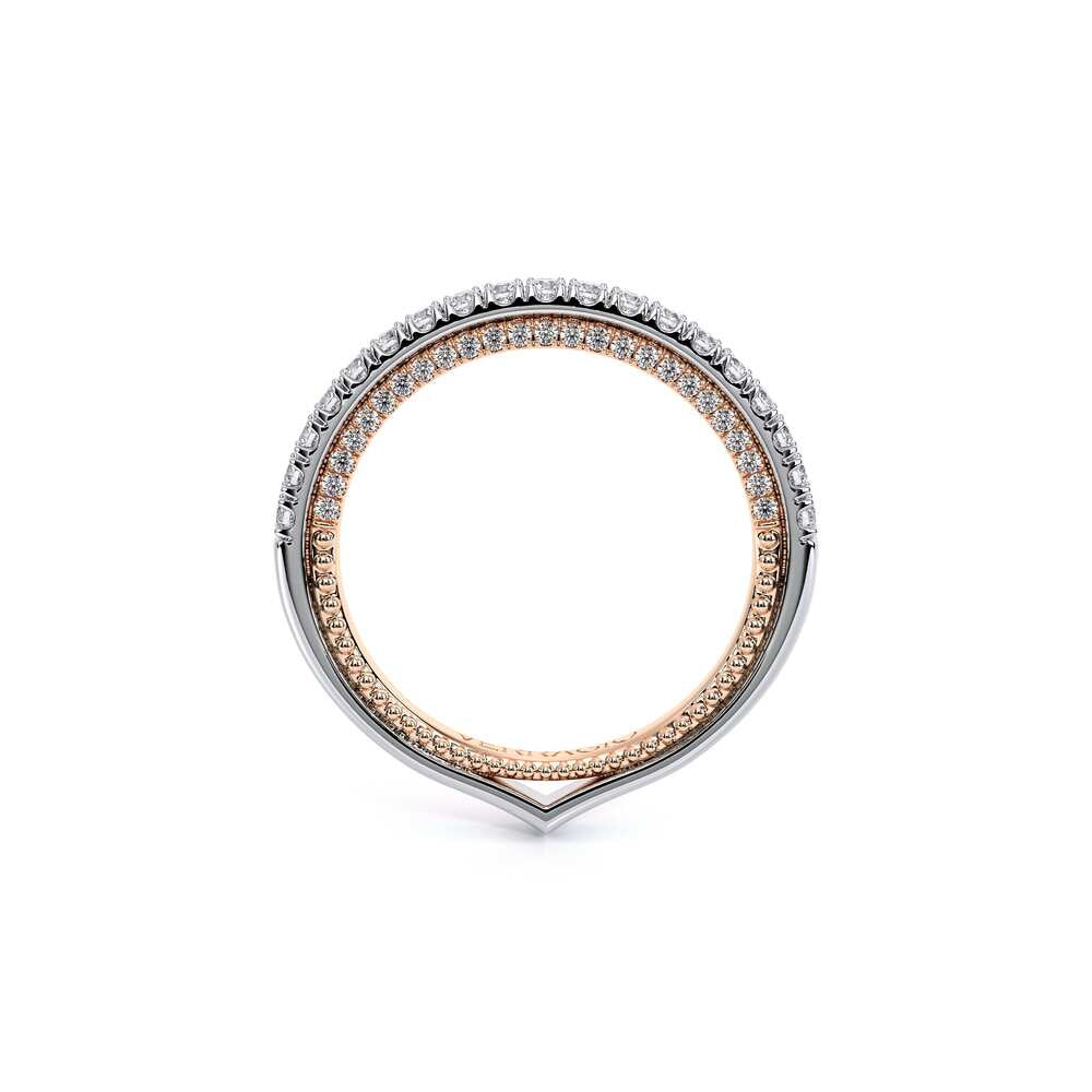 COUTURE-0444W Dazzling Wedding band pave with round brilliant diamonds, featuring Half Diamond Riviera-Signature Beading profile, completed with the Couture pointed shank.