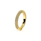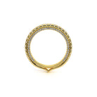 COUTURE-0468W Dazzling Pave set wedding band with round brilliant diamonds, featuring 3/4 Diamond Riviera-Signature Beading profile, completed with the Couture pointed shank.
