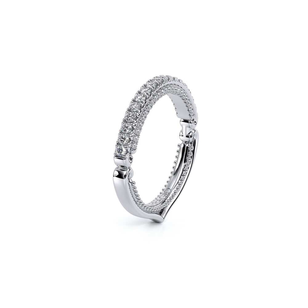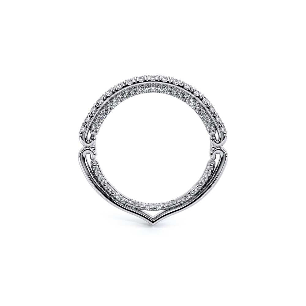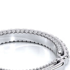 COUTURE-0470W Unique Wedding band pave with round brilliant diamonds, featuring half Diamond Riviera distinct from Signature Beading profile, completed with the Couture pointed shank.