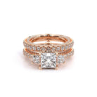 COUTURE-0479P is our new Three Stone Engagement ring, highlighting our meticulously set diamond bridge elevating the surrounding princess side stones. With the addition of our 3/4 Diamond Riviera and Verragio's signature crest the radiance of this style is unlike any other.