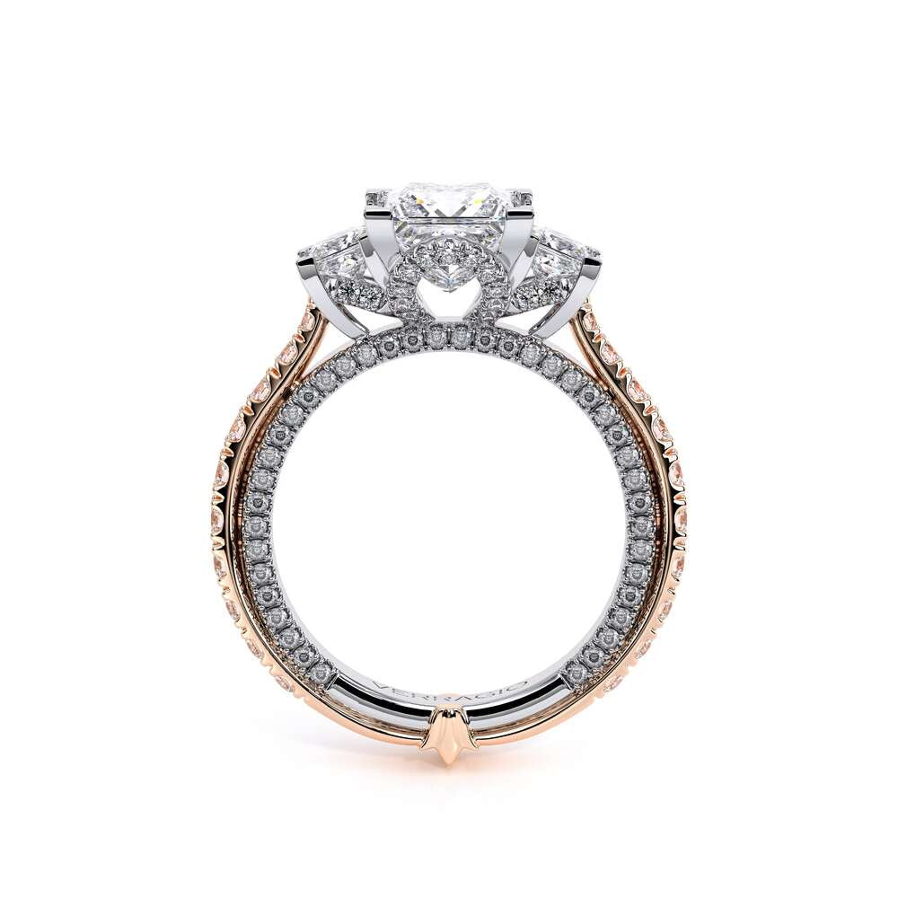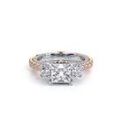 COUTURE-0479P is our new Three Stone Engagement ring, highlighting our meticulously set diamond bridge elevating the surrounding princess side stones. With the addition of our 3/4 Diamond Riviera and Verragio's signature crest the radiance of this style is unlike any other.