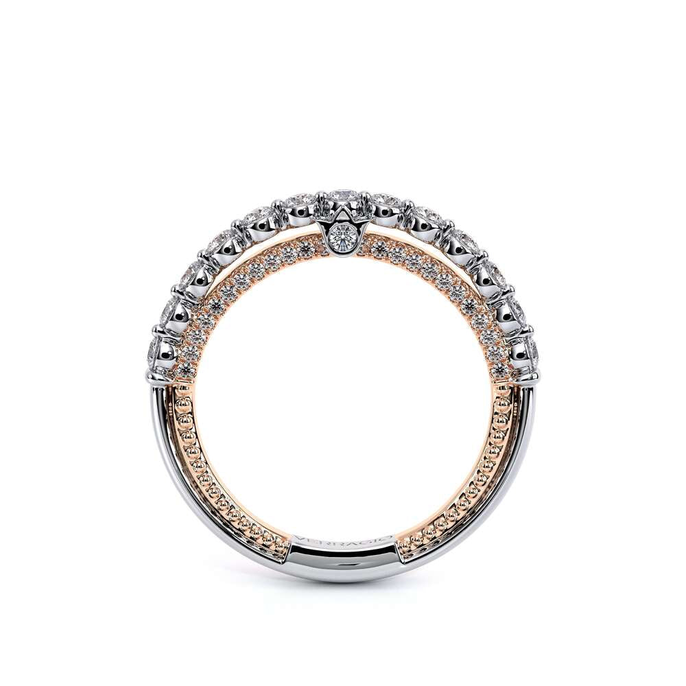 COUTURE-0480W features round brilliant-cut diamonds, adorned with a 1/2 Diamond Riviera. Refined with Verragio's Signature beading and crest.