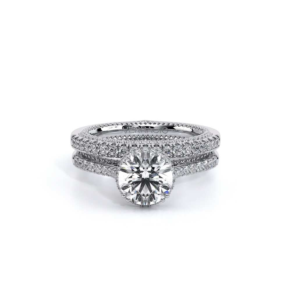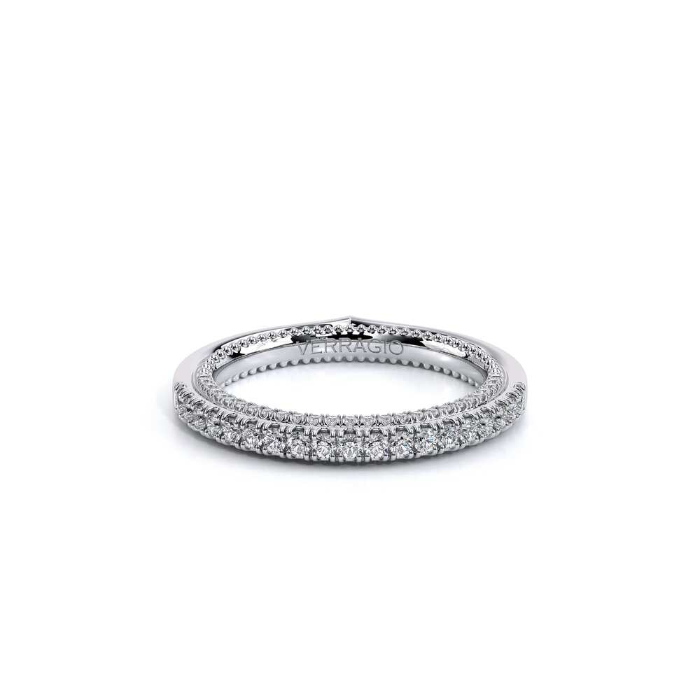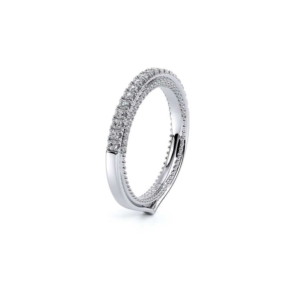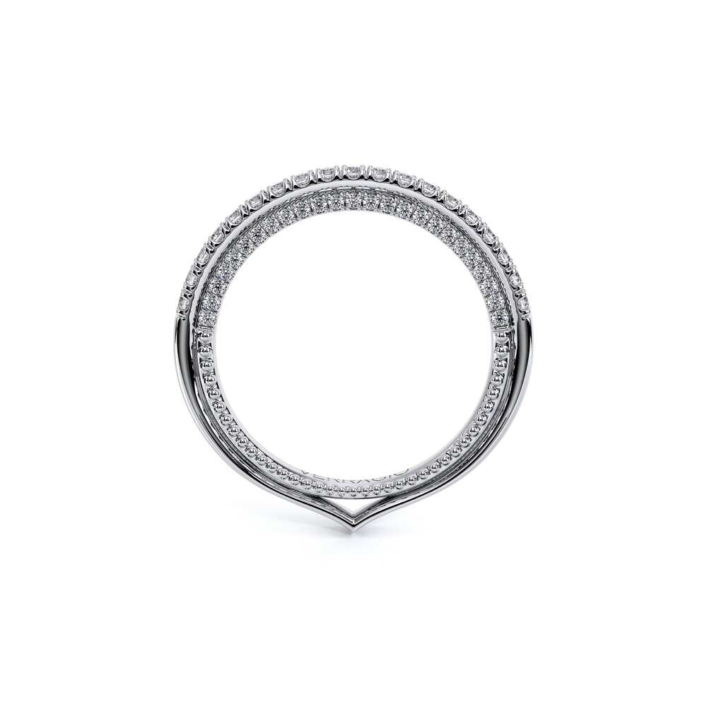 COUTURE-0482W Dazzling Wedding band pave with round brilliant diamonds, featuring Half Diamond Riviera-Signature Beading profile, completed with the Couture pointed shank.