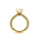 Couture-0488EM2.5 is an elevated four-prong engagement setting designed to highlight your center stone. Meticulously-set round diamonds in a shared-prong setting wrap the elegant shank, enhanced with a pave-set three-quarter diamond riviera. This statement look is perfected with the distinctive Verragio signature crest.