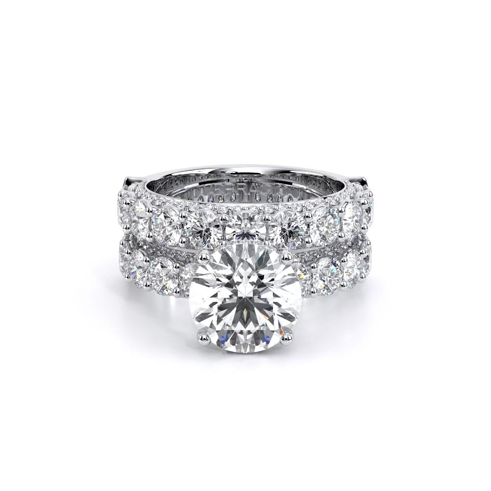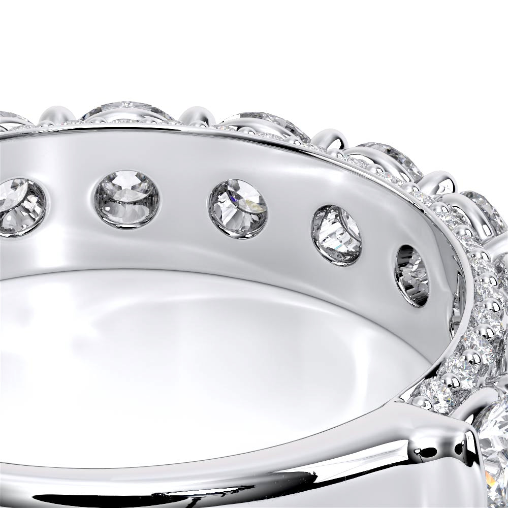 Couture-0489W3.4 is meticulously set with round diamonds in a shared-prong setting, artfully nestled in an elegant shank. A pave-set three-quarter diamond riviera seamlessly completes the sophisticated design.