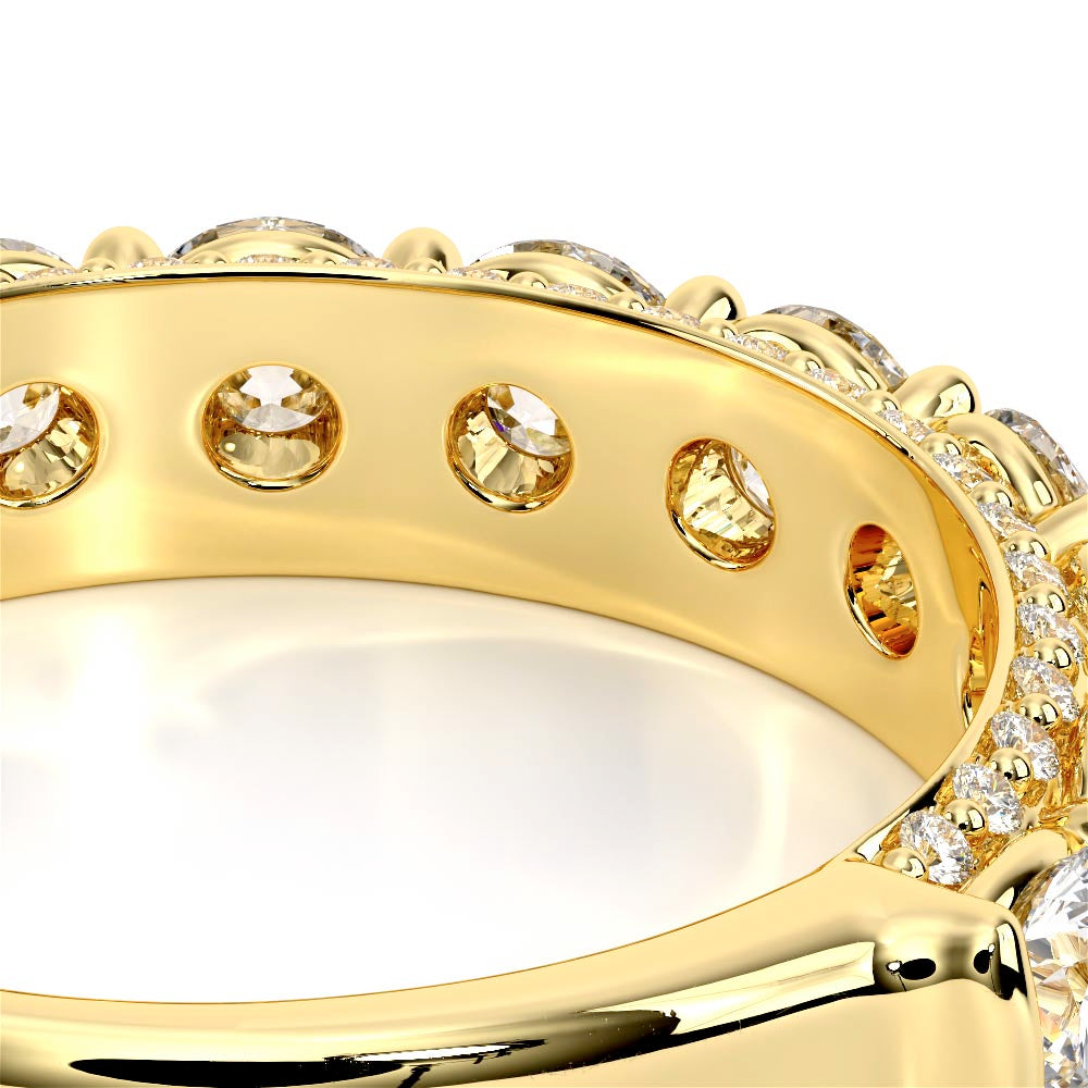 Couture-0489W3.4 is meticulously set with round diamonds in a shared-prong setting, artfully nestled in an elegant shank. A pave-set three-quarter diamond riviera seamlessly completes the sophisticated design.