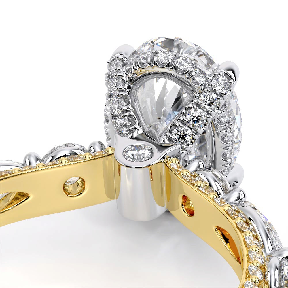 Couture-0490OV-3.0 is an elevated four-prong engagement ring featuring a diamond-bridge head designed to highlight your center stone. Meticulously-set alternating round and marquise diamonds in a shared-prong setting wrap the elegant shank, enhanced with a pave-set three-quarter diamond riviera. The Verragio signature crest completes the statement look.