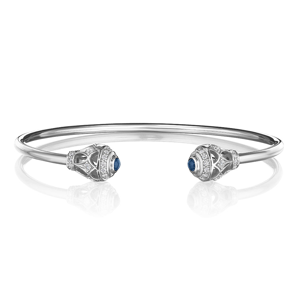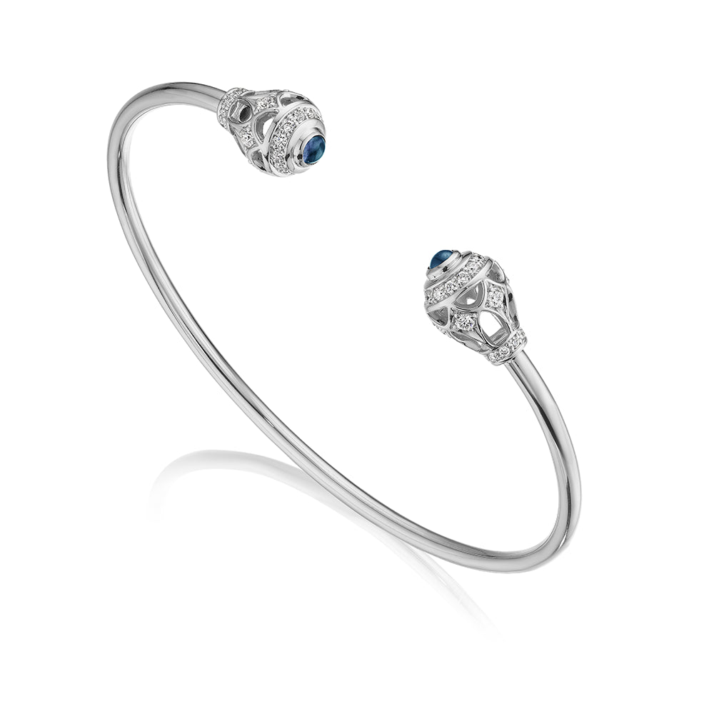 J-0312201-WC 18K white gold diamond and blue topaz bangle with 0.64ctw diamonds.