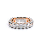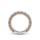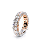 Eterna-2022-OV-5-3Q, Stunning Eternity band featuring Oval cut diamonds going 3/4 way around along with our signature diamond riviera on the inside, add on to the sparkle of this band.