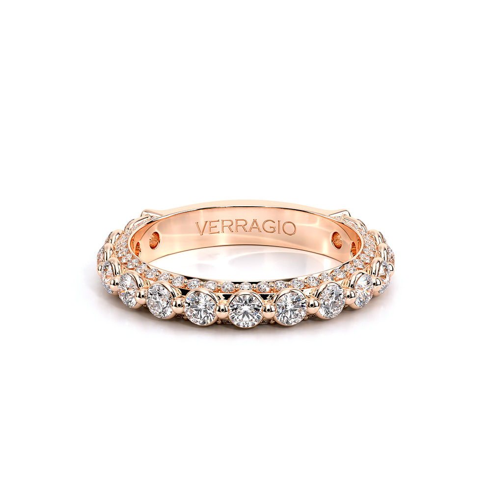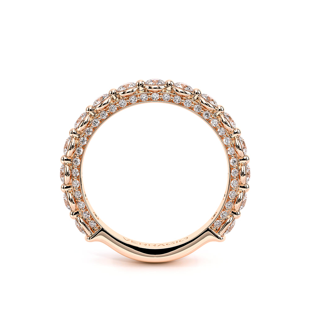 Eterna-2023-R-25-3Q, Eternity style band featuring Round Brilliant cut diamonds going 3/4 way around along with our signature diamond riviera on the inside add on to the sparkle of this band.