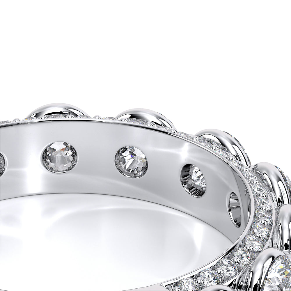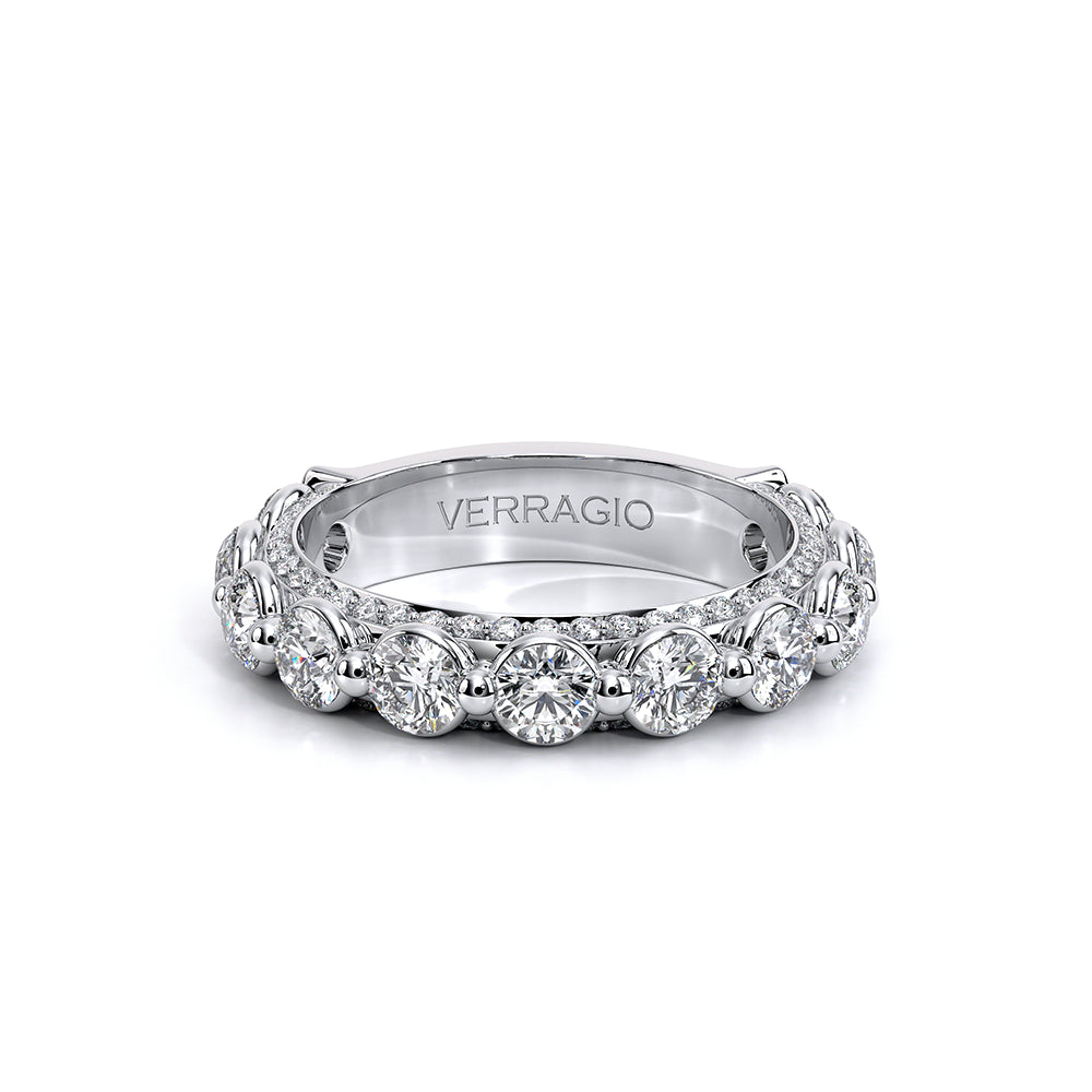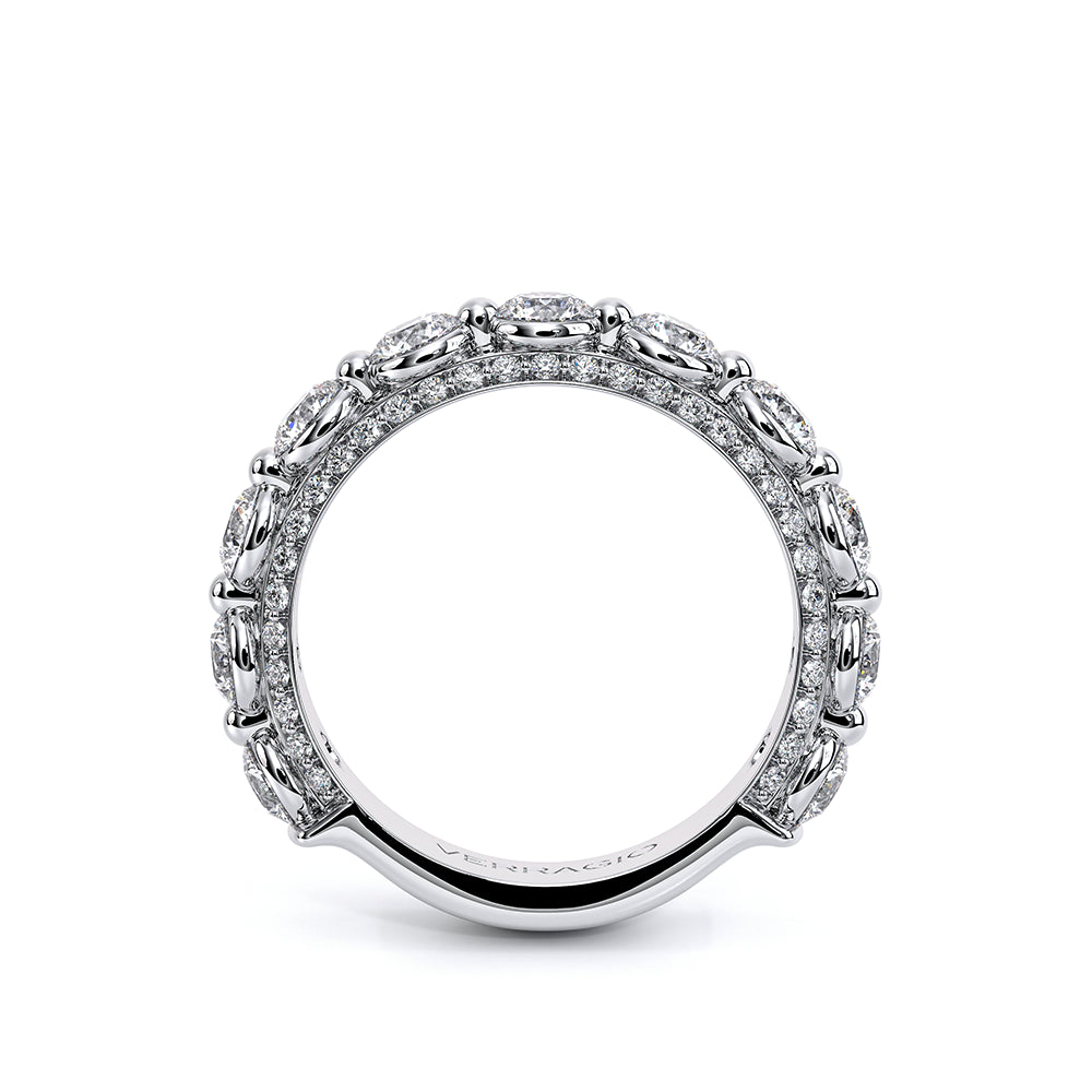 Eterna-2023-R-35-3Q, Stunning eternity style band featuring Round diamonds going 3/4 way around along with our signature diamond riviera, completes this beauty.