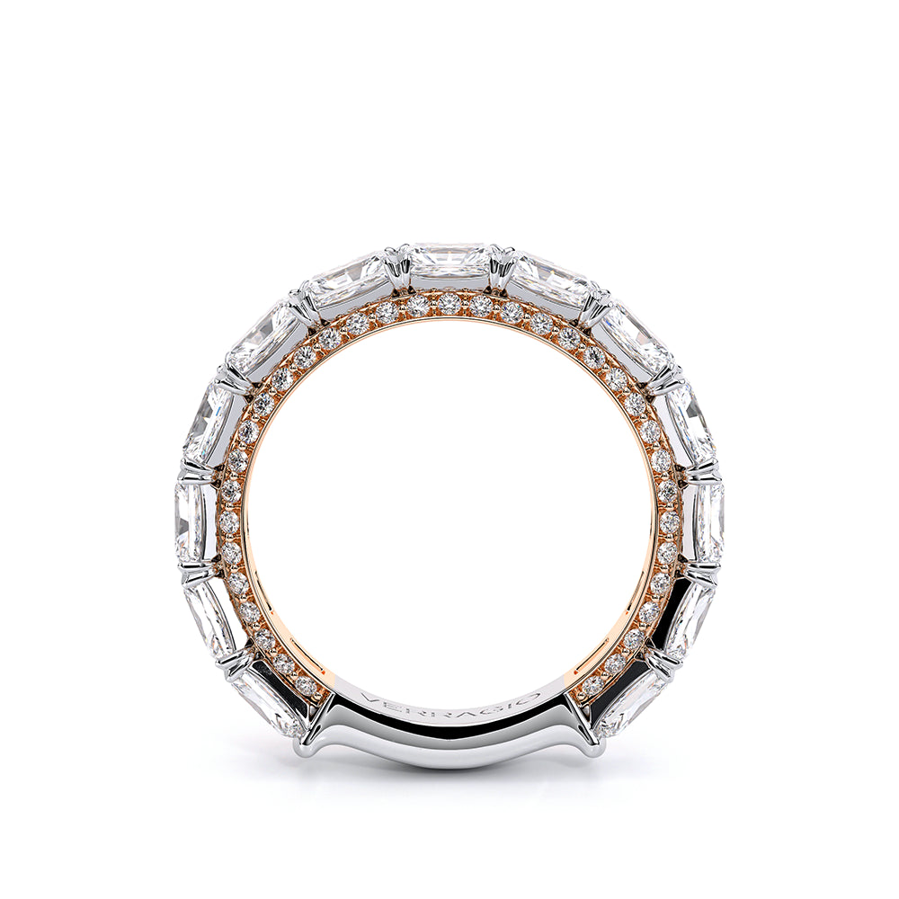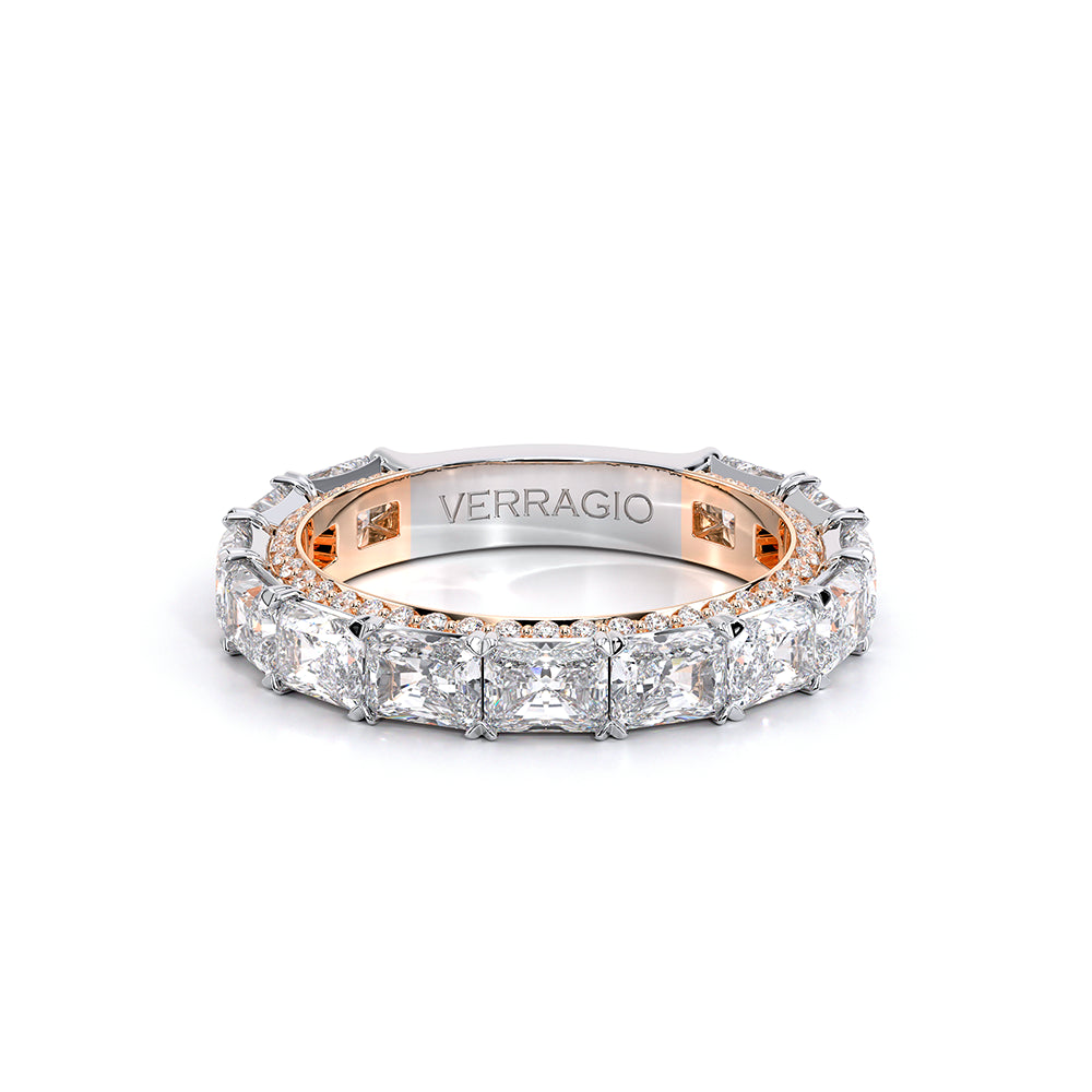 Eterna-2025-RAD-4X3-3Q, Eternity style band featuring Radiant cut diamonds going 3/4 way around. Our stunning diamond riviera with round brilliant cut diamonds on the inside completes this beautiful piece.
