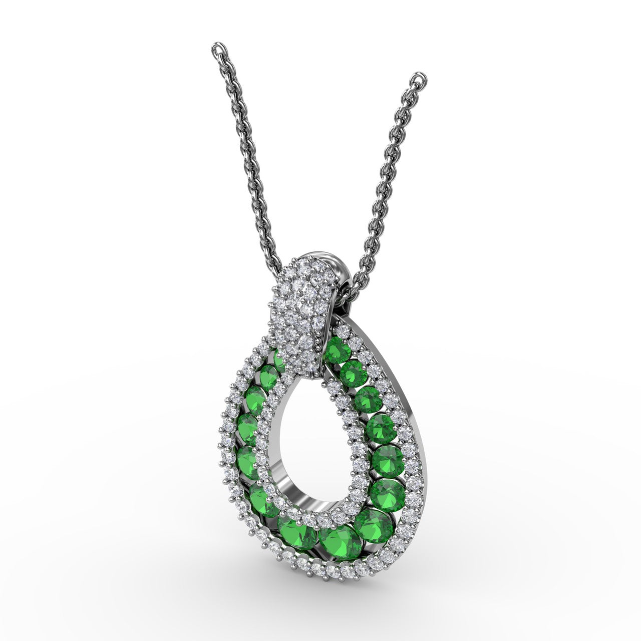 Fana 14k White Gold Steal The Spotlight Emerald and Diamond Pendant