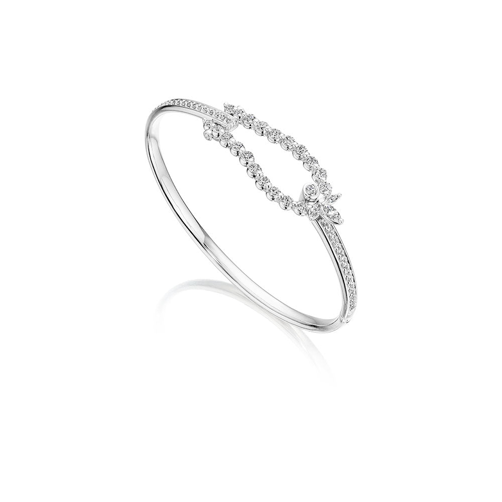 J-0431703-WC 18K white gold diamond buckle bangle with 1.94ctw diamonds.
