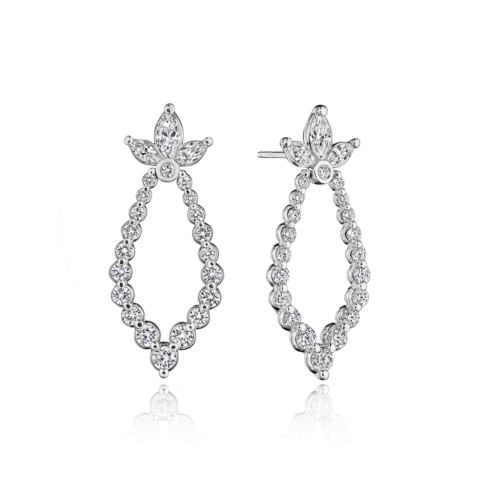 A diamond earring with bold style, the graduated marquise shape of this 18k white gold dangle gives Art Deco a fresh new look. The signature Vanguard marquise motif makes them an integral part of your wardrobe.
