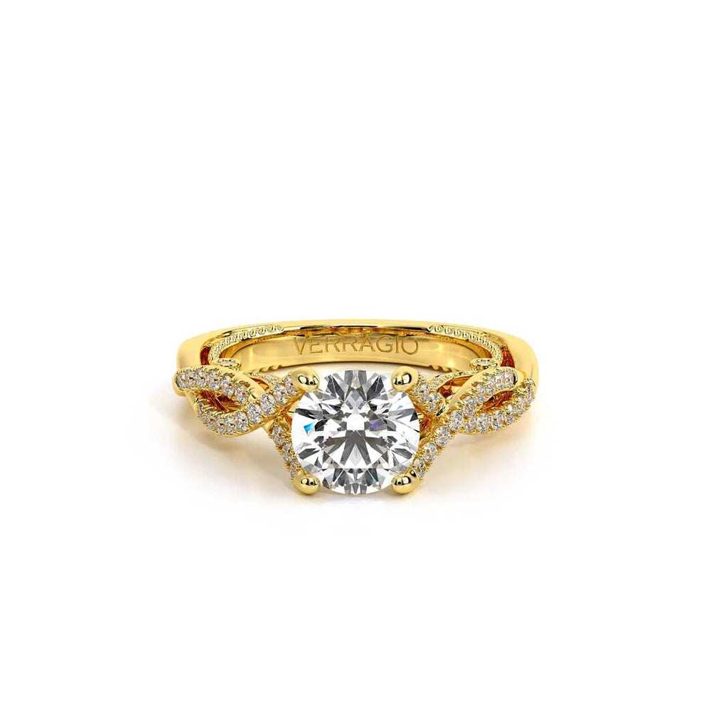 INSIGNIA-7060 Round engagement ring. Featuring, round brilliant-cut pave set diamonds on a twisted band. Distinctively paired with Verragio's handcrafted signature beading.