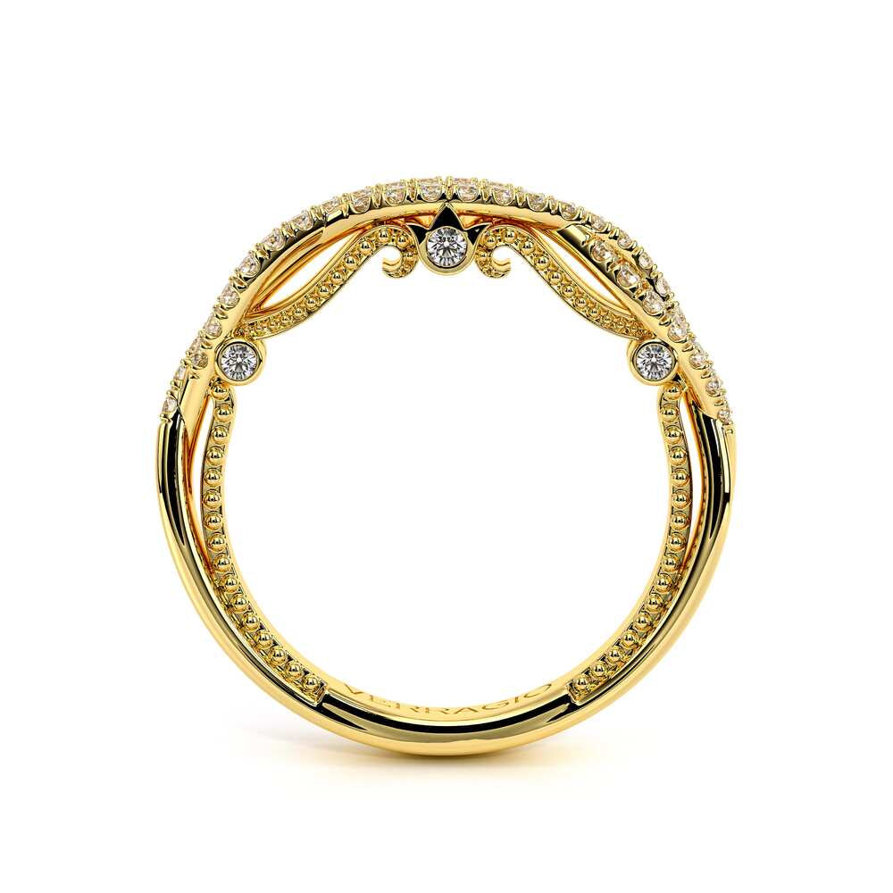 INSIGNIA-7060W wedding ring from the Insignia Collection, featuring round brilliant-cut diamonds pave set on a twisted shank. Complimented by Verragio's timeless signature crest beading.