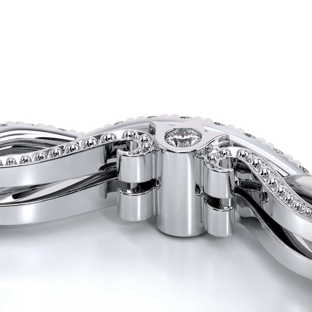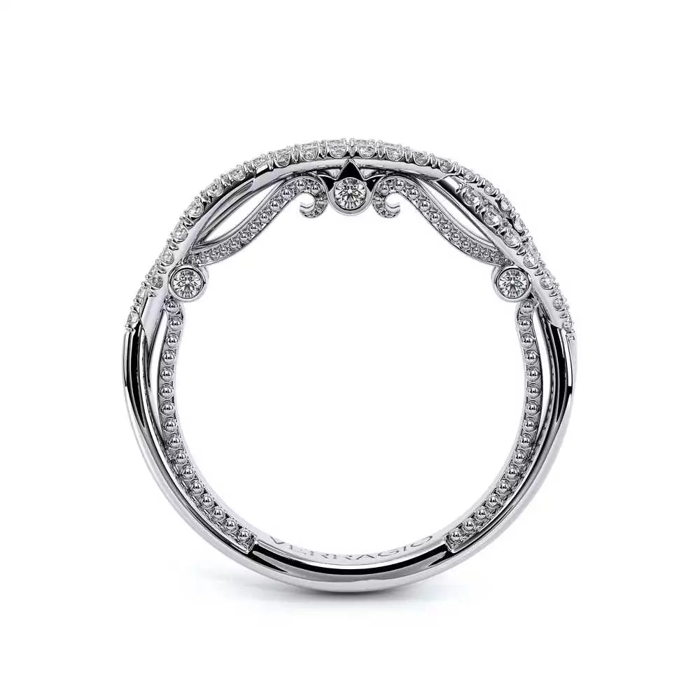 INSIGNIA-7060W wedding ring from the Insignia Collection, featuring round brilliant-cut diamonds pave set on a twisted shank. Complimented by Verragio's timeless signature crest beading.